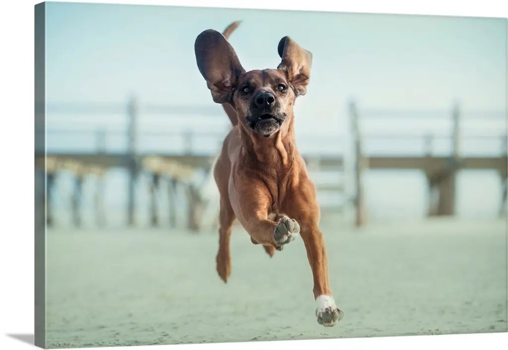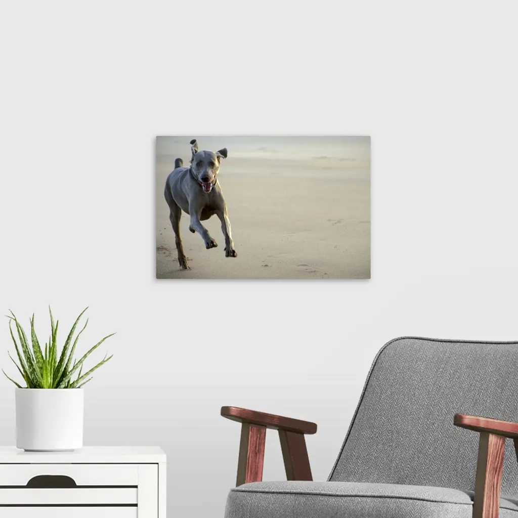 Weimaraner At Full Speed On A Stormy Beach