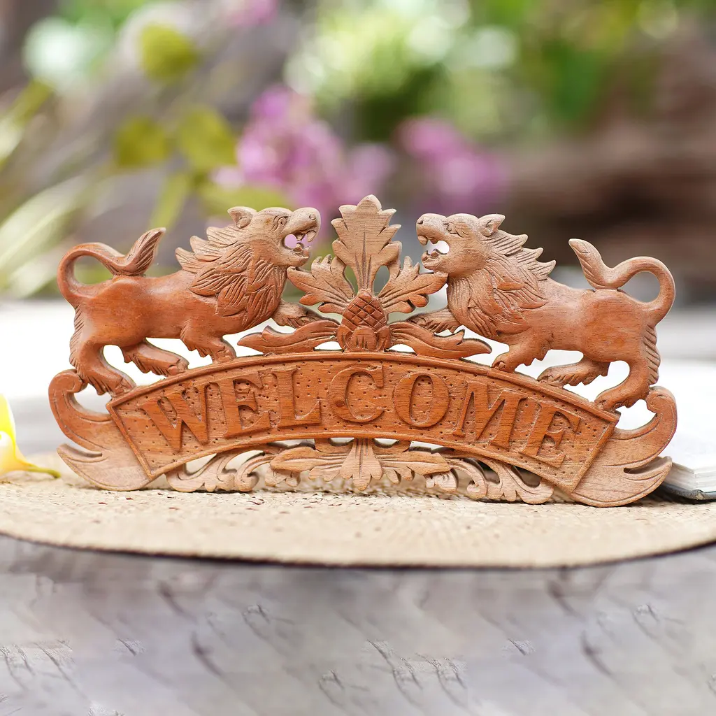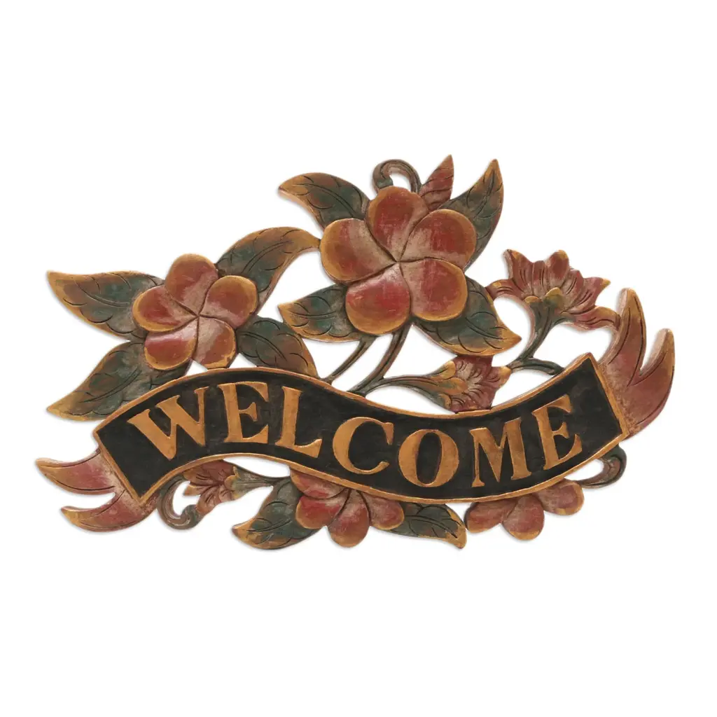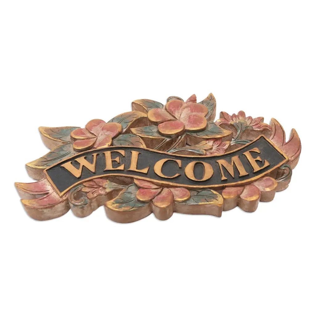 Welcome Home Wood Relief Panel Hand-Carved In Bali- Welcome Back Home