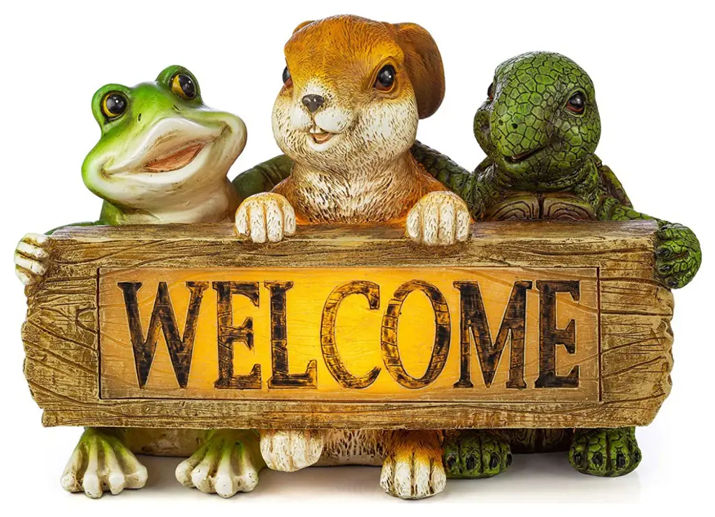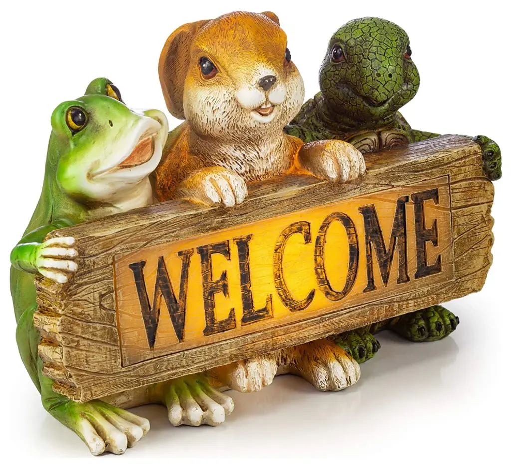 Welcome Sign Frog Rabbit Turtle Solar Light