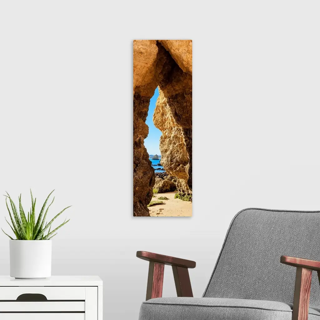 It's a natural passage in a rock cliff on the beach of Praia do Camillo in Lagos (Portugal).