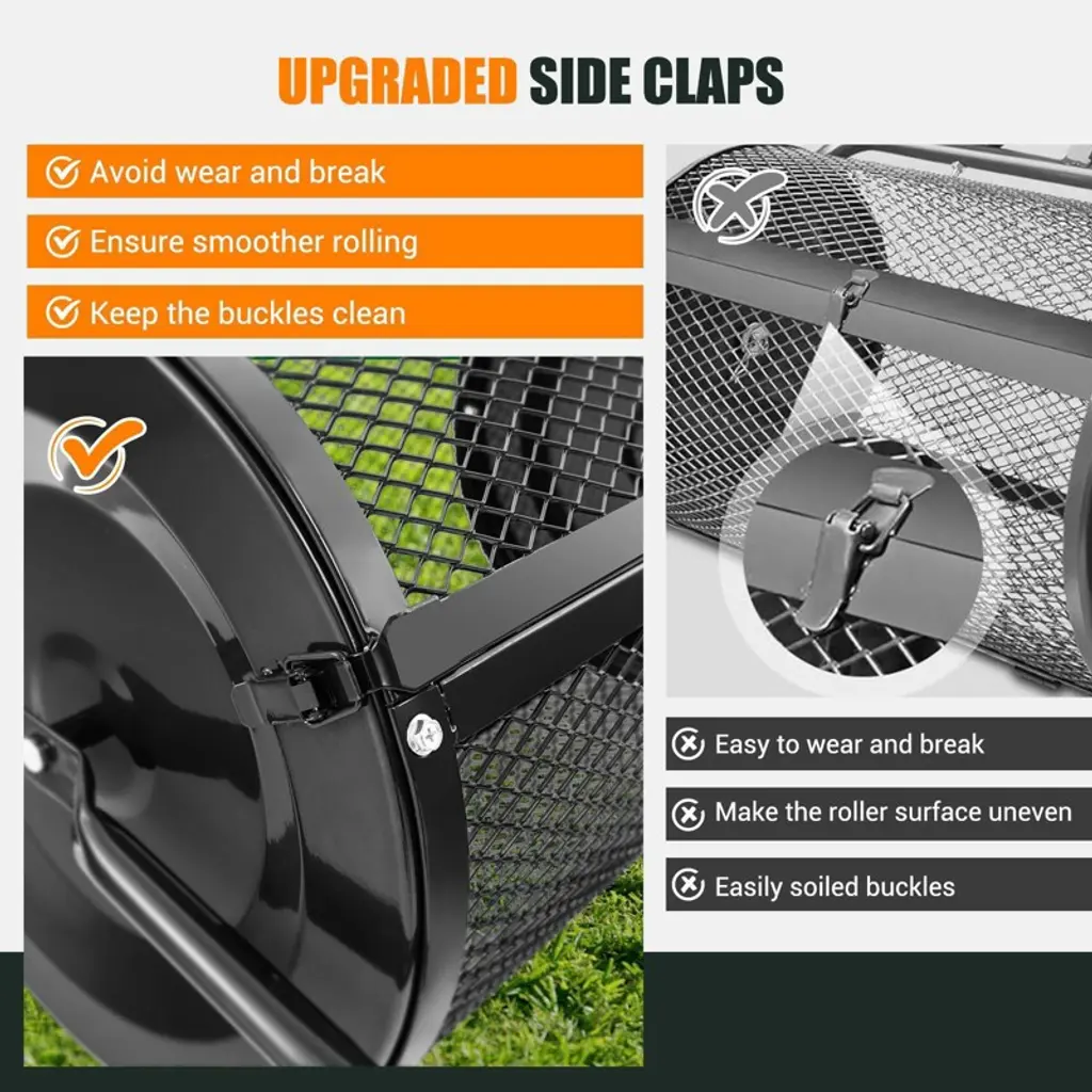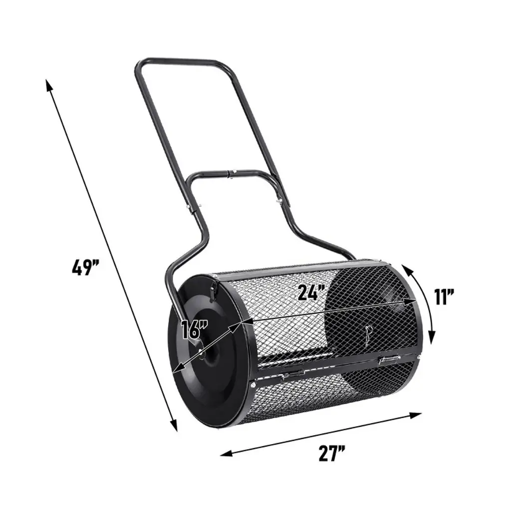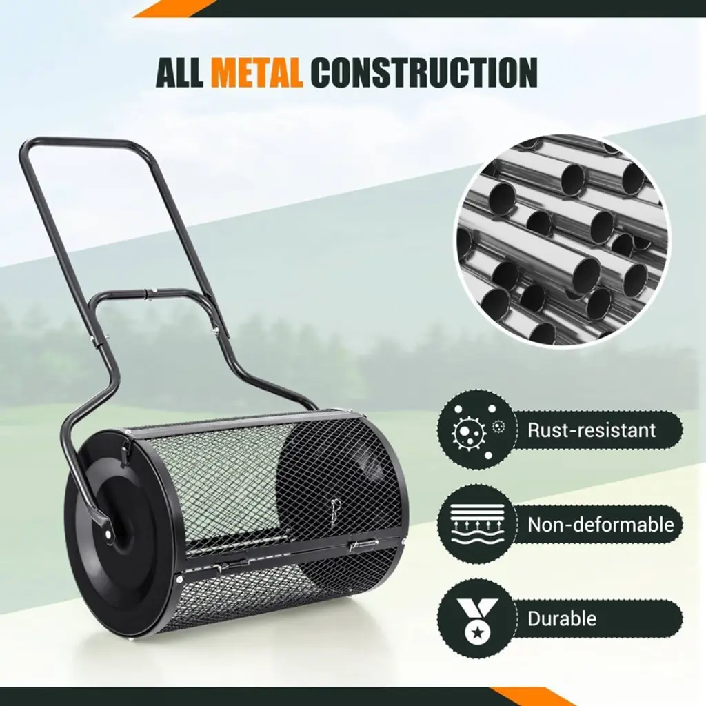 The Spreader is a versatile tool designed for efficient and even spreading of various materials such as sand, compost, manure, and peat moss. Its durable and high-intensive mesh cage ensures uniform distribution, while upgraded side clasps enable smoother rolling and keep buckles clean. Built with rust-resistant, non-deformable all-metal construction, it includes a large filling door for quick refills and a convenient door latch to prevent accidental openings.