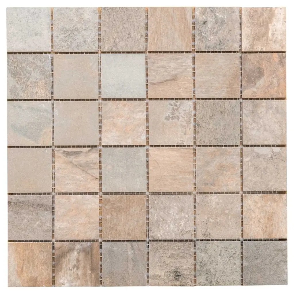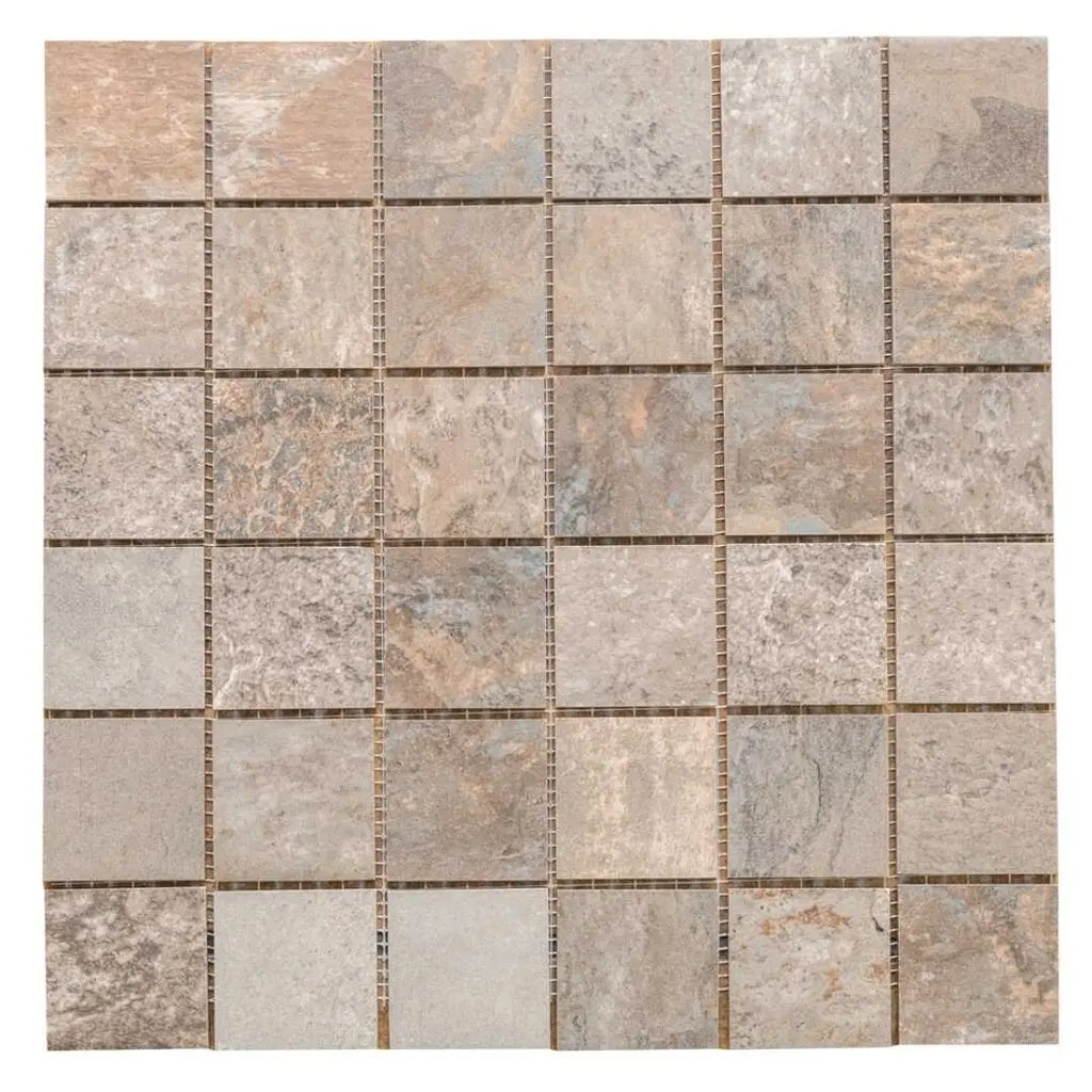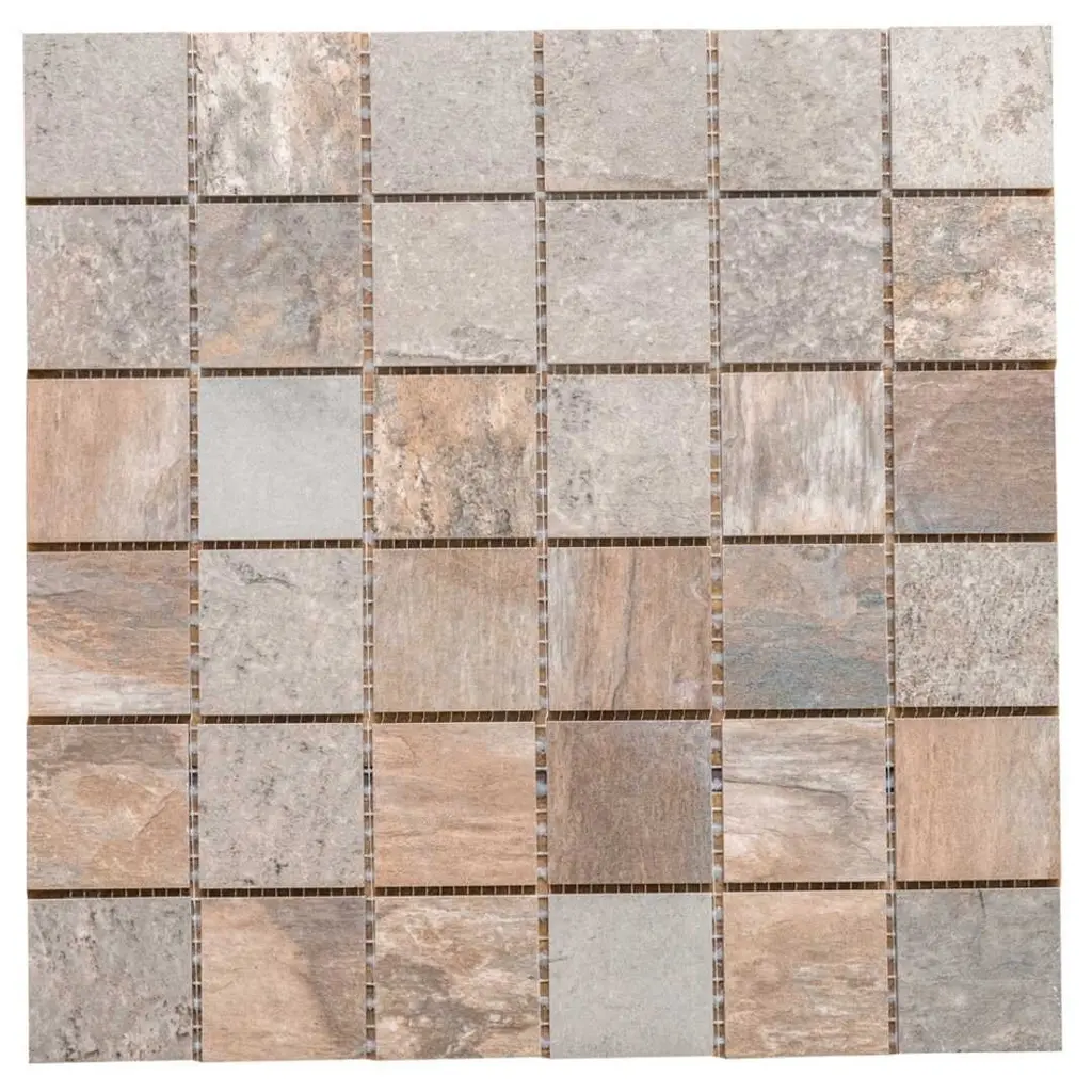 Wells Stone 2" X 2" Porcelain Floor And Backsplash Wall Tile - Brown - 1 Sheet (1 Sq. Ft.)