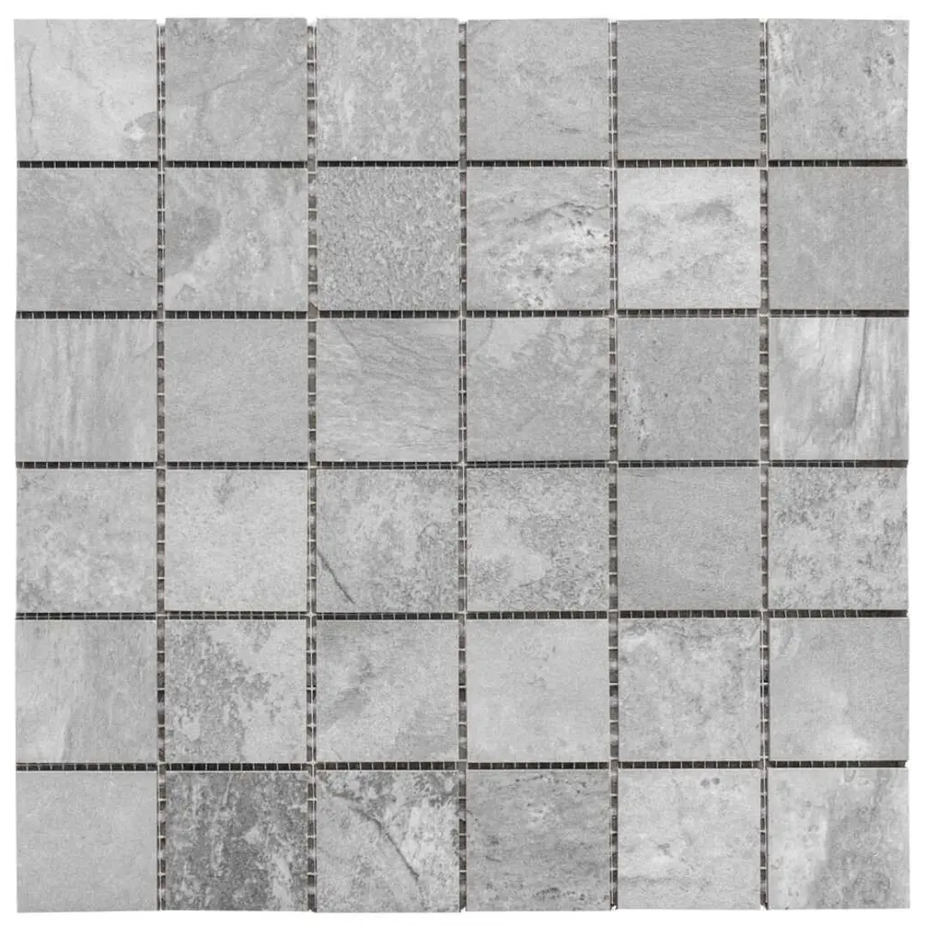 Wells Stone 2" X 2" Porcelain Floor And Backsplash Wall Tile - Grey - 1 Sheet (1 Sq. Ft.)