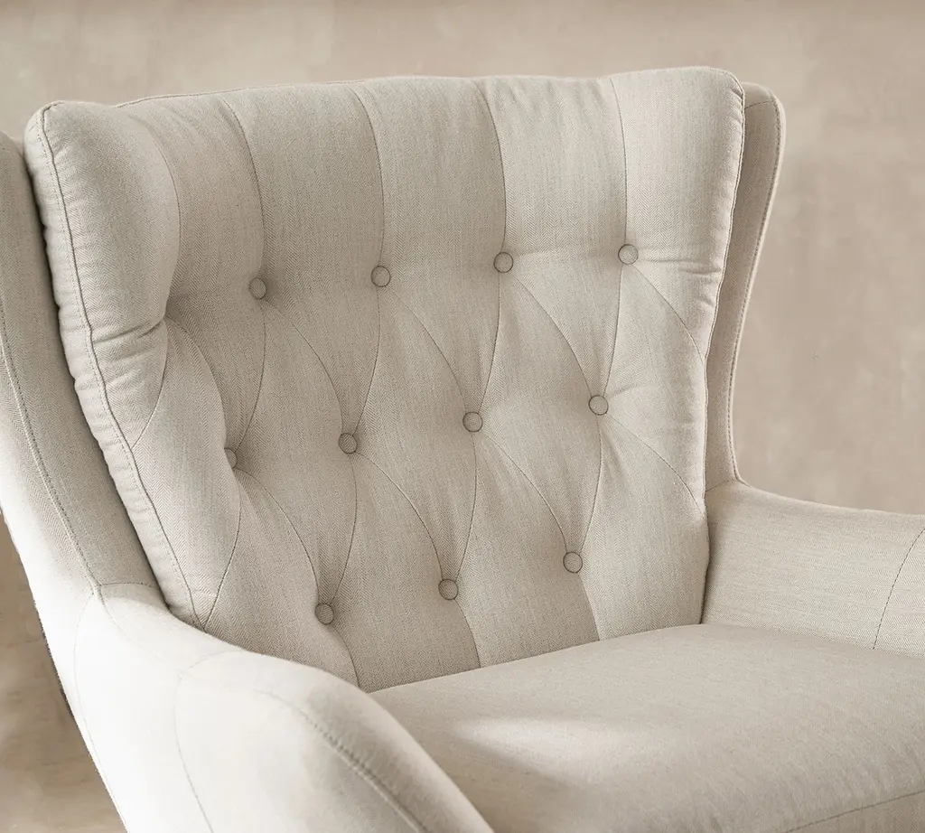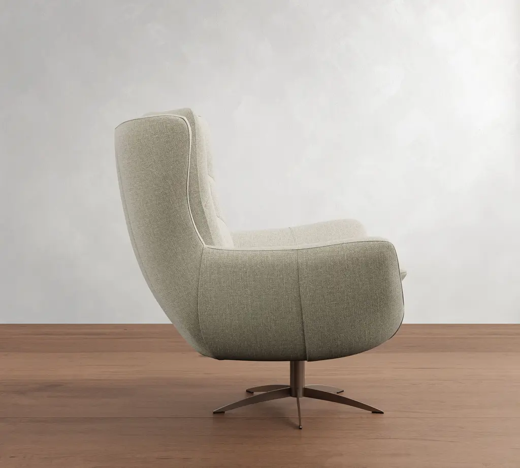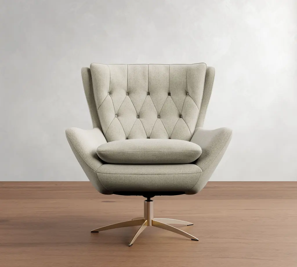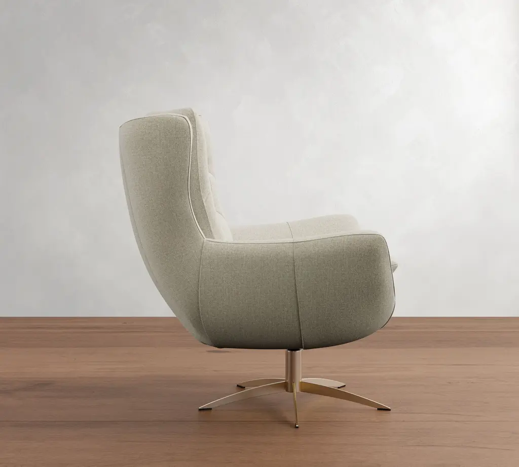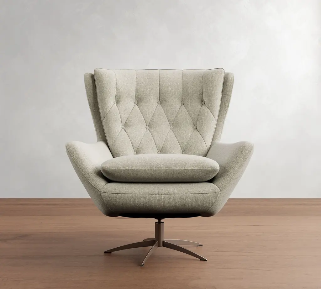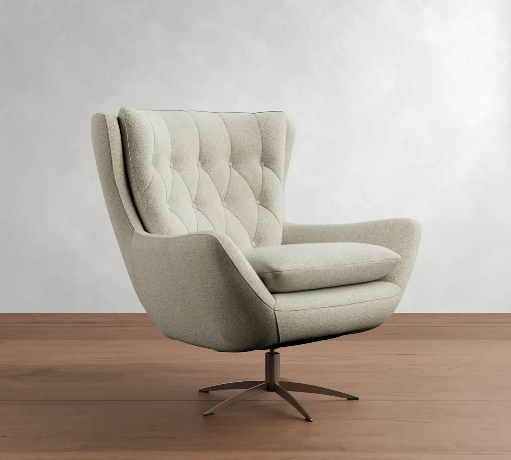 Handsomely styled with a modified wingback, Wells makes even a small room feel like a cozy study. We love its shapely silhouette – comfy and enveloping. The swivel design is a real head turner, and the traditional button tufting is as classic as it gets.