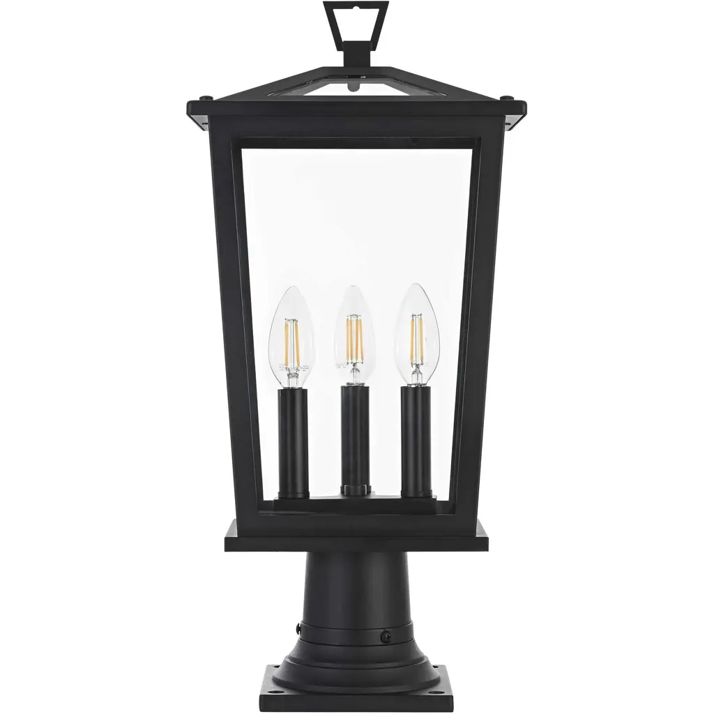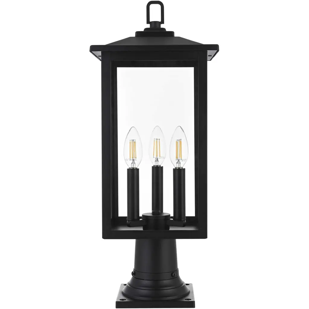 The Wellsworth 3-Light Outdoor Post Light by Visual Comfort Studio, formerly known as Sean Lavin, is a fusion of nautical nuances and traditional elements. Its tall, cast aluminum frame is resistant to rust making it an ideal choice for outdoor lighting while its sleek handle is reminiscent of vintage lanterns. This post light features seeded glass panels on all sides that house a series of candelabra lamps, producing a warm, welcoming ambiance ideal for entryways, patios, and porches.