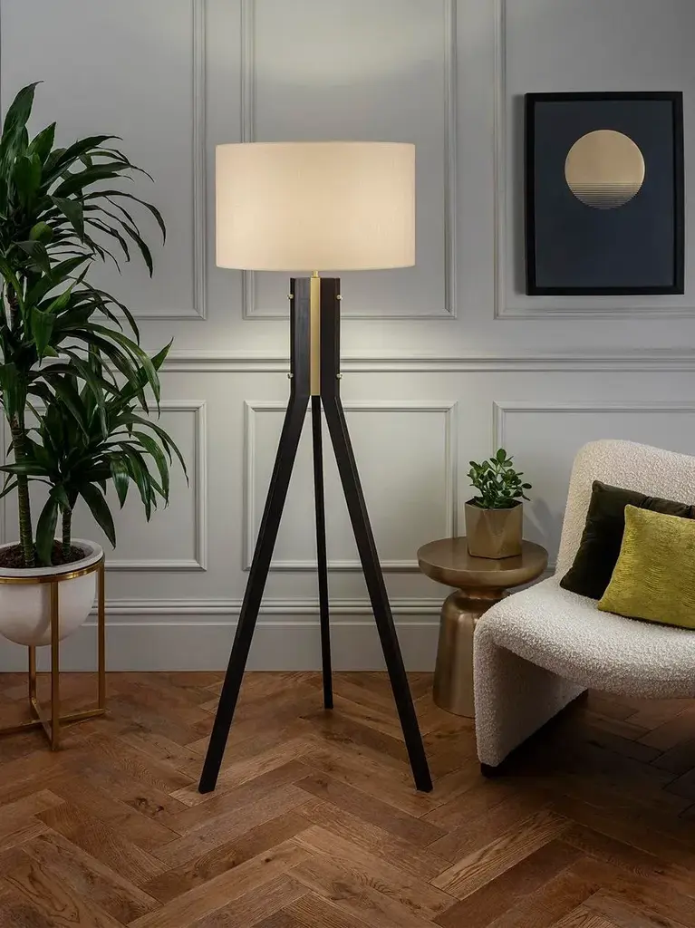 Wenge With Satin Brass Tribus Floor Light