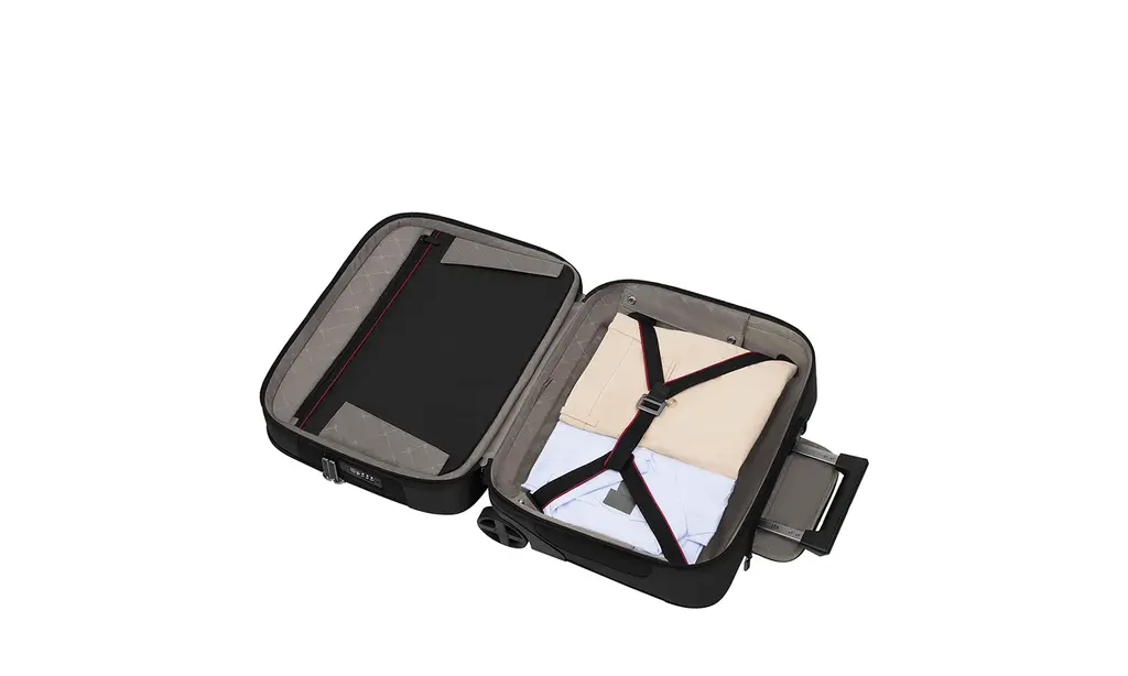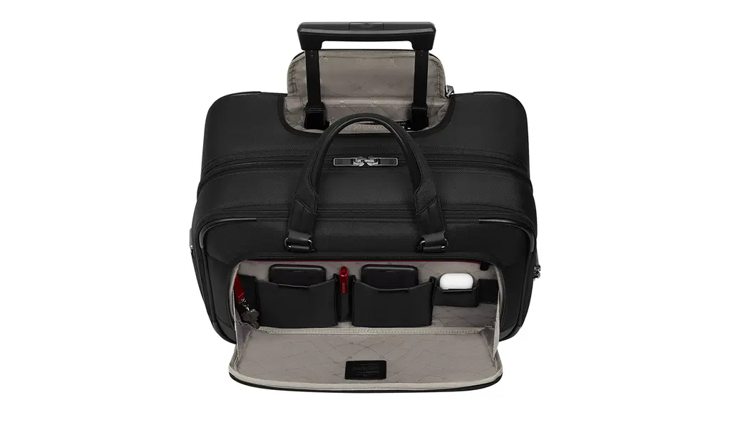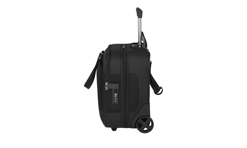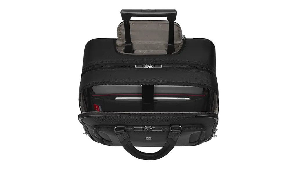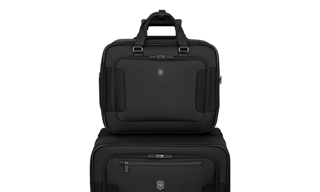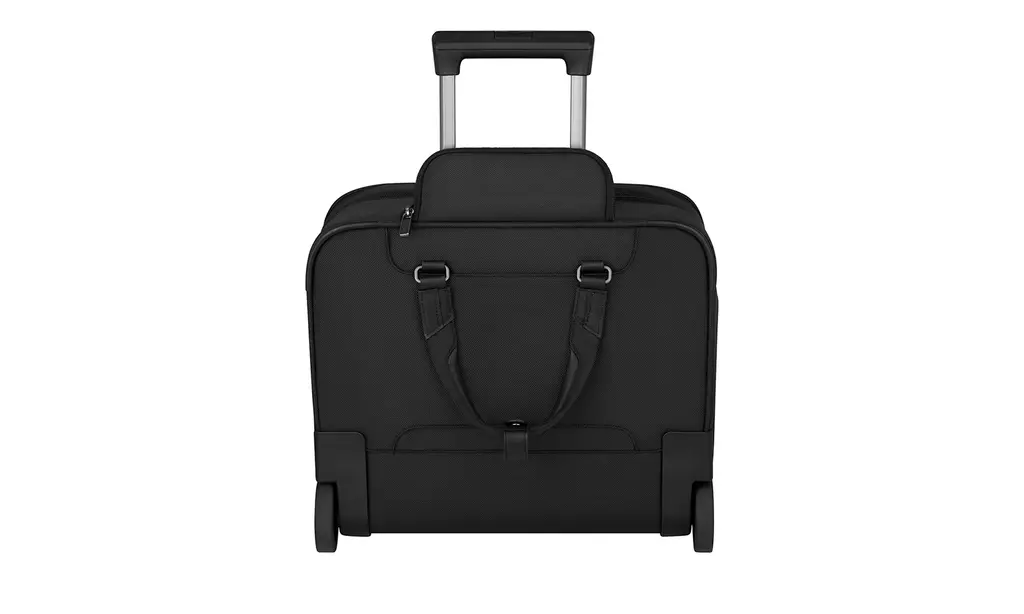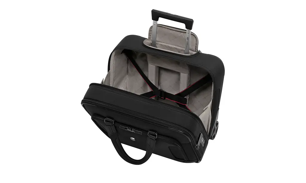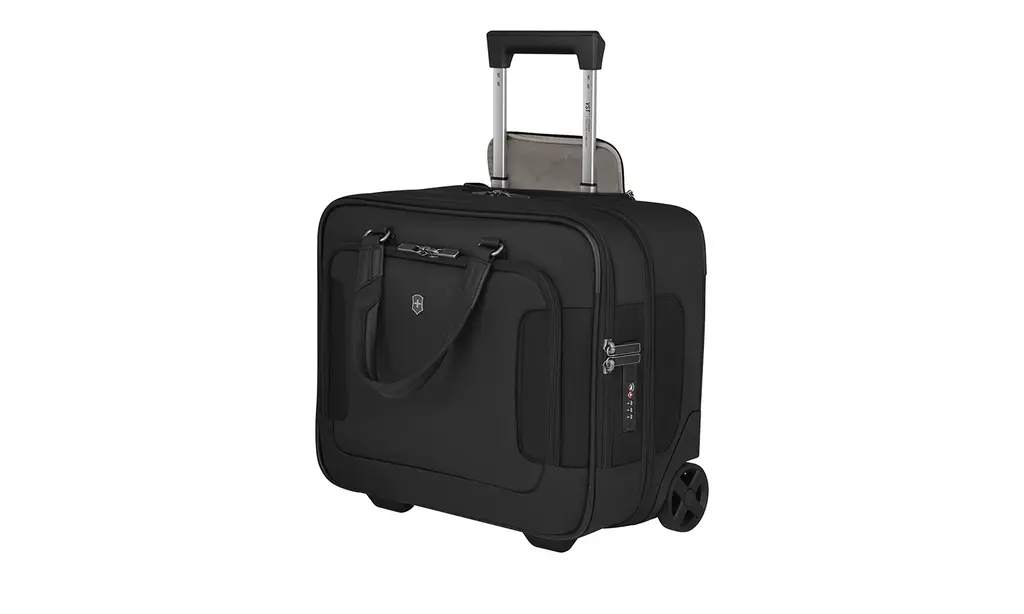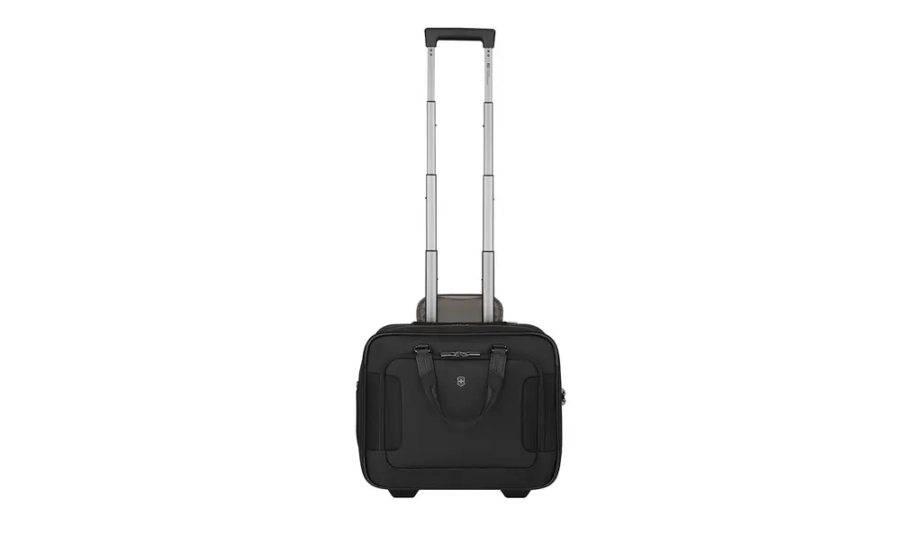 Make the most of your carry-on space using the integrated compartments and compression straps of Victorinox's wheeled briefcase.