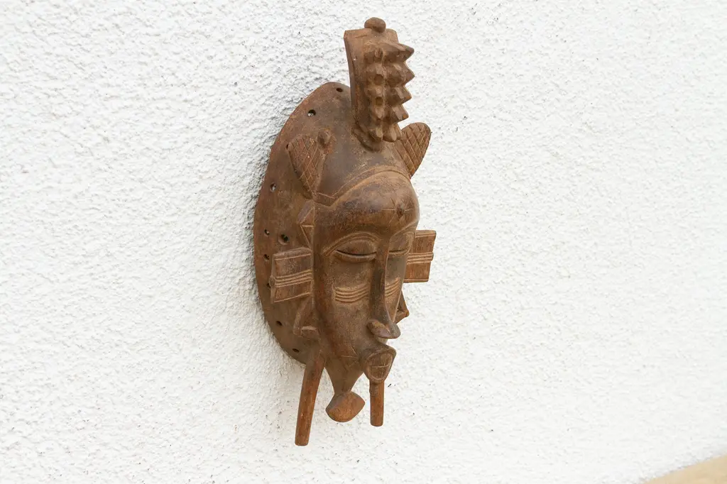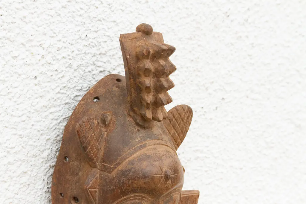 This mask likely originates from West Africa, possibly from the Ijo people of Nigeria or a related culture. The Ijo are known for their diverse masking traditions, often incorporating animal motifs and intricate geometric designs. Masks like this one would have been used in rituals, ceremonies, or performances, embodying ancestral spirits, deities, or other important figures within the community. The zoomorphic elements and the overall design aesthetic suggest a connection to nature.