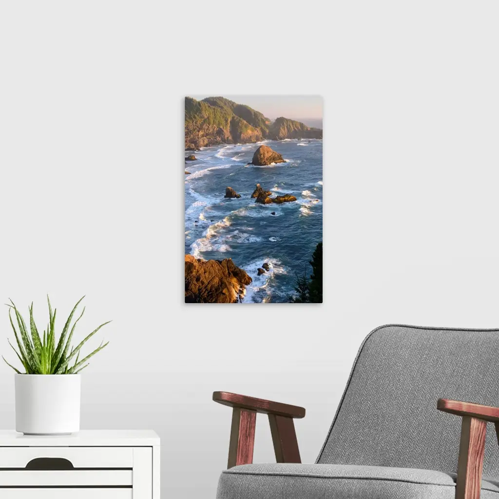 West Coast, Oregon, State Scenic Corridor, Sunset With Waves Crashing