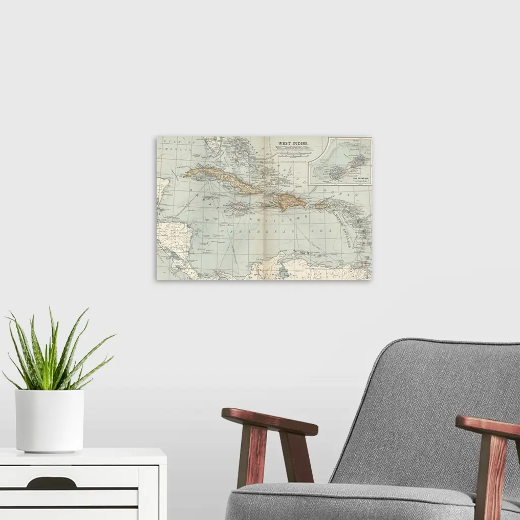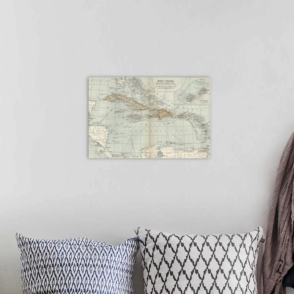 West Indies - Vintage Map wall art for home and office decor. Discover canvas art prints, photos, mural, big canvas art and framed wall art in GreatBigCanvas.com's varied collections.