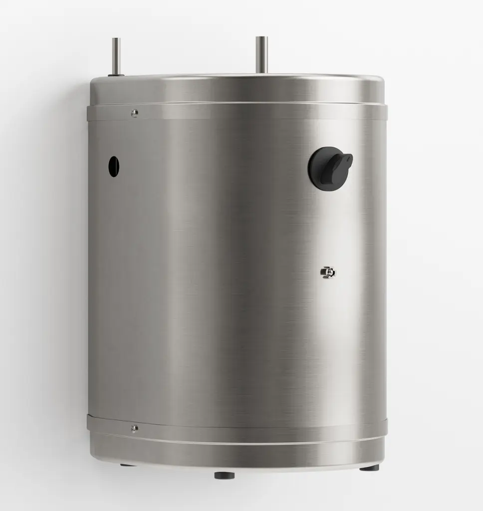 Inspired by Northwest Modern design and crafted in solid brass, our West Slope Gooseneck Hot and Cold Water Dispenser features an insulated spout and dual-handle design. Make a hot cup of tea or fill your water bottle with filtered water in seconds. Available in multiple finish options. Designed in collaboration with Watermark, a plumbing mainstay of Brooklyn, NY for over 30 years, our West Slope Collection features timeless solid-brass fixtures that are manufactured, assembled, and finished in Watermark's Brooklyn Factory. Details You'll Appreciate Insulated spout Includes hot water tank and water filtration system On-demand hot water at 190-degrees Fahrenheit or filtered room temperate water Point of Use Filtration System removes 99.9% of particles over .5 microns Features anti-scale media for protection against scale build-up on the faucet and inside of the hot tank 1,250 gallon capacity - lasts one year based on average usage Water filtration system features 1,250 gallon capacity - lasts one year based on average usage Product Specifications Kit includes faucet, hot water tank and filtration system Hot water tank capacity: 5/8 gallon (2-1/2 quarts) Solid brass faucet trim; stainless steel tank Max flow rate: 1.8 gpm Assembled in the USA of domestic and imported parts