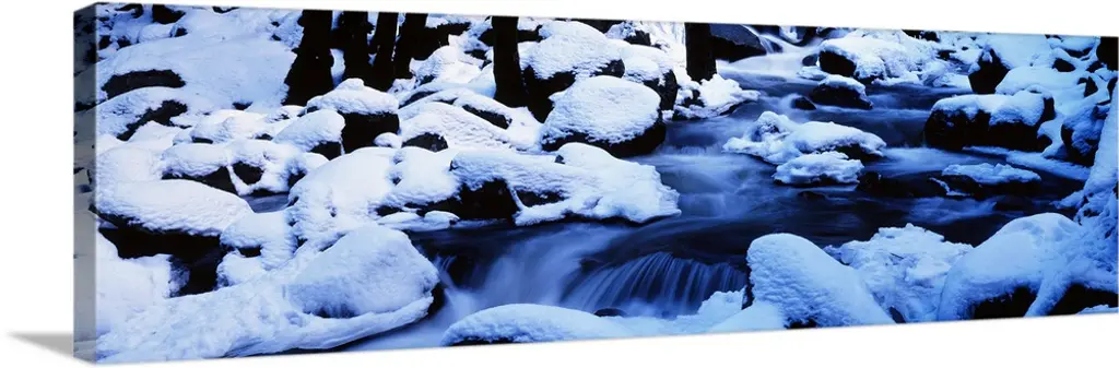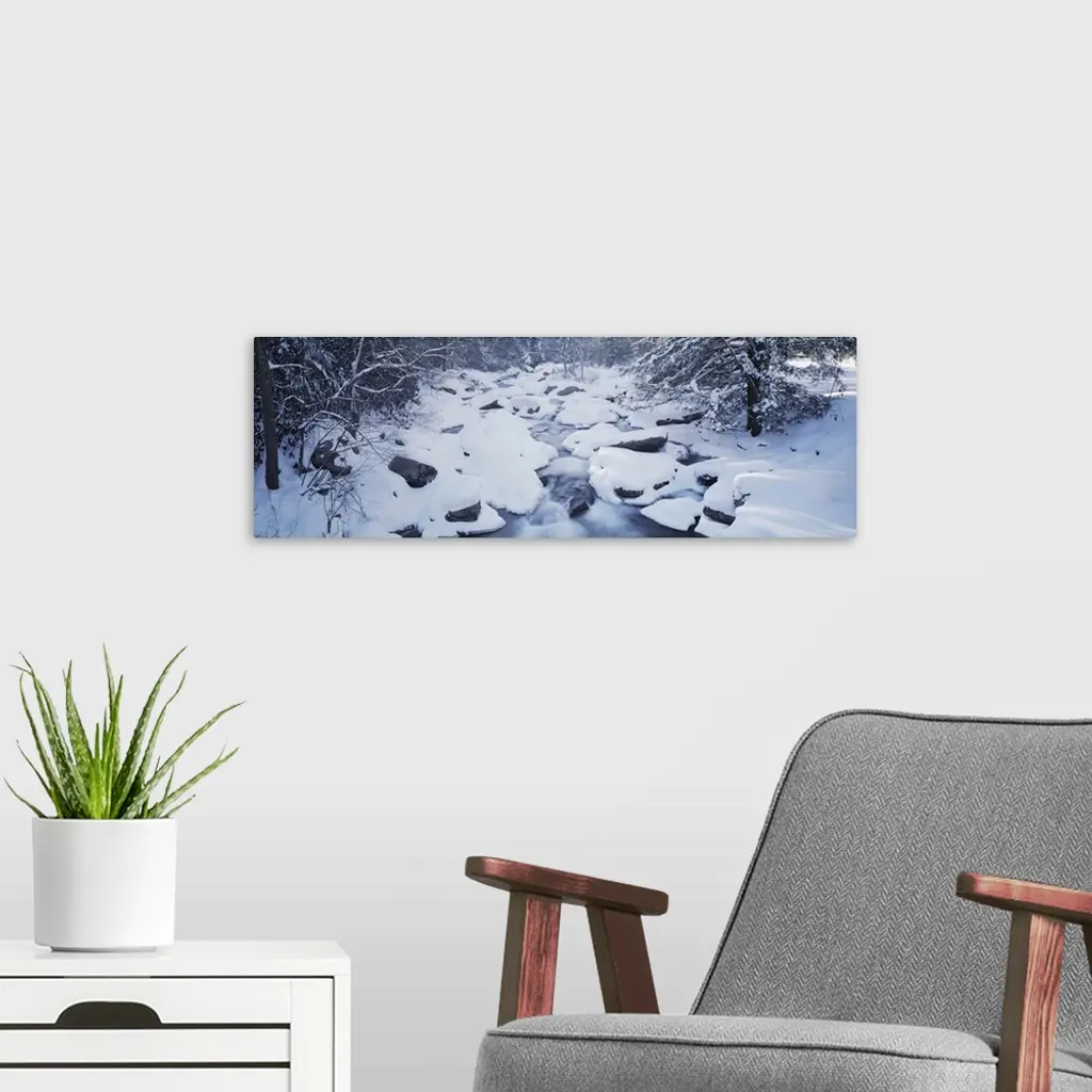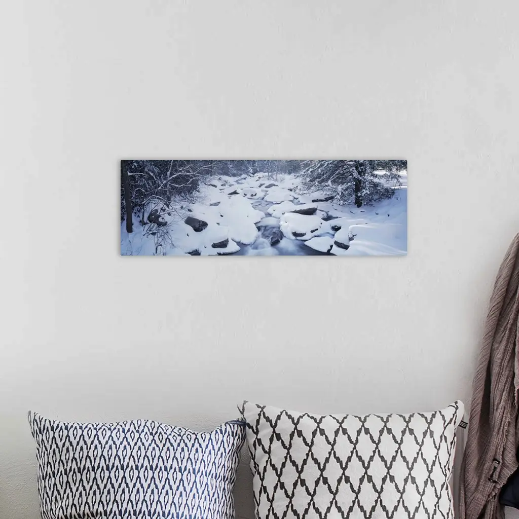 West Virginia, Babcock State Park, Stream of water flowing in snowcapped forest wall art for home and office decor. Discover canvas art prints, photos, mural, big canvas art and framed wall art in GreatBigCanvas.com's varied collections.