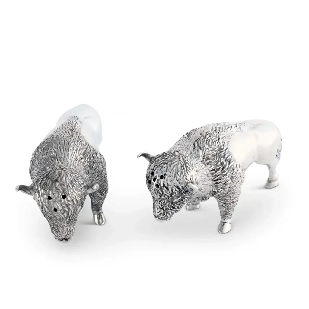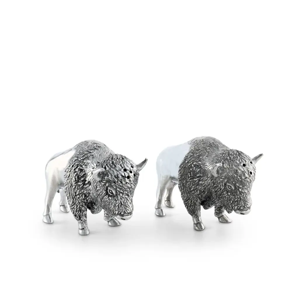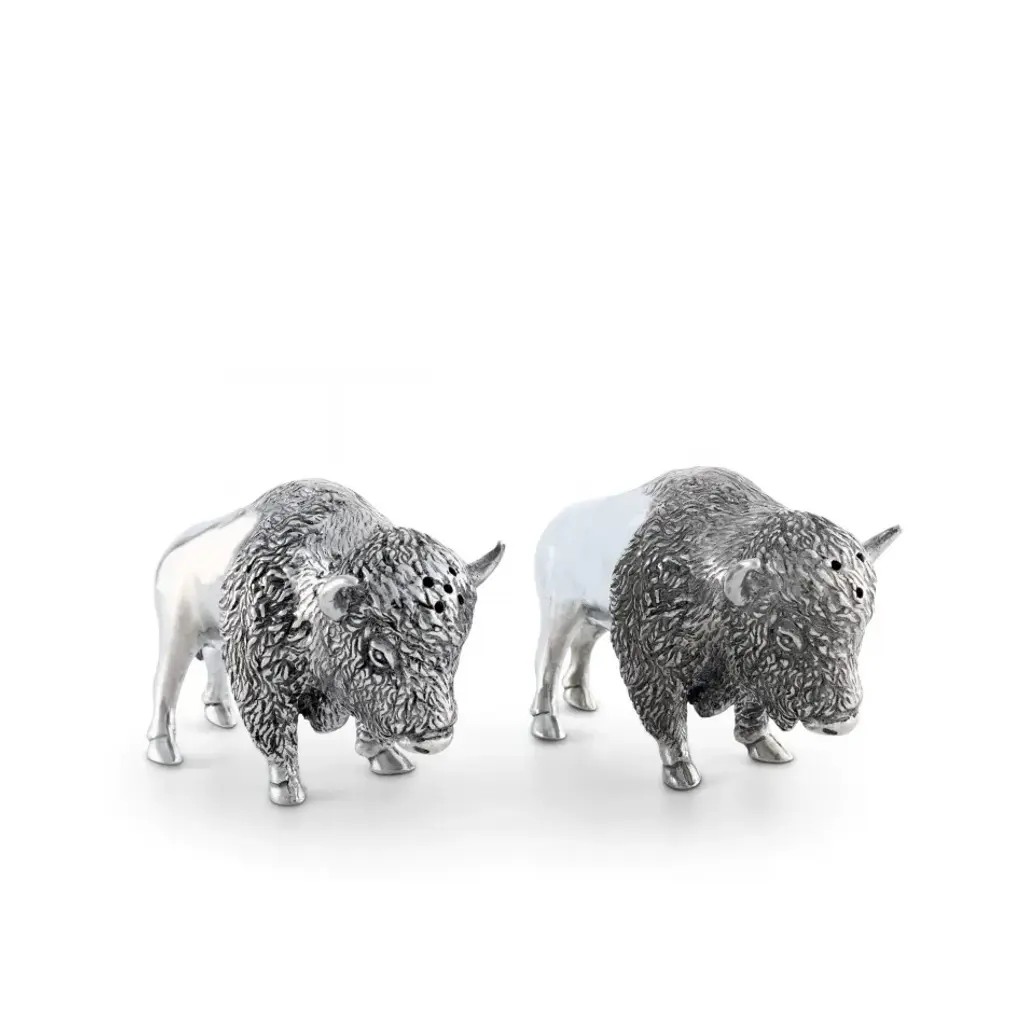 Vagabond House's Bison Salt and Pepper Set is crafted in richly detailed luxury grade pewter. Accurately detailed from their solid hooves to the tips of their horns, this set is a perfect table accent for a western ranch themed celebration or home. Wonderfully detailed and realistic Vagabond House Pewter Salt and Pepper sets make perfect gifts for nuptials, housewarming, collectors or just because. Vagabond House is a family-owned American company specializing in fine pewter tableware, servingware and giftware. Largely inspired by nature, their exclusive products are designed to be unique, functional heirlooms for those who seek to express tradition and style in both family and formal entertaining.