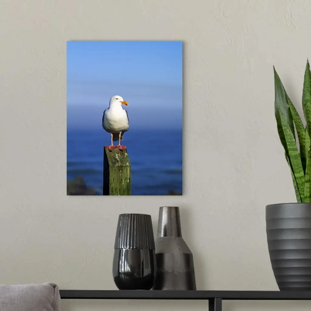 Western Gull Seabird On Post wall art for home and office decor. Discover canvas art prints, photos, mural, big canvas art and framed wall art in GreatBigCanvas.com's varied collections.