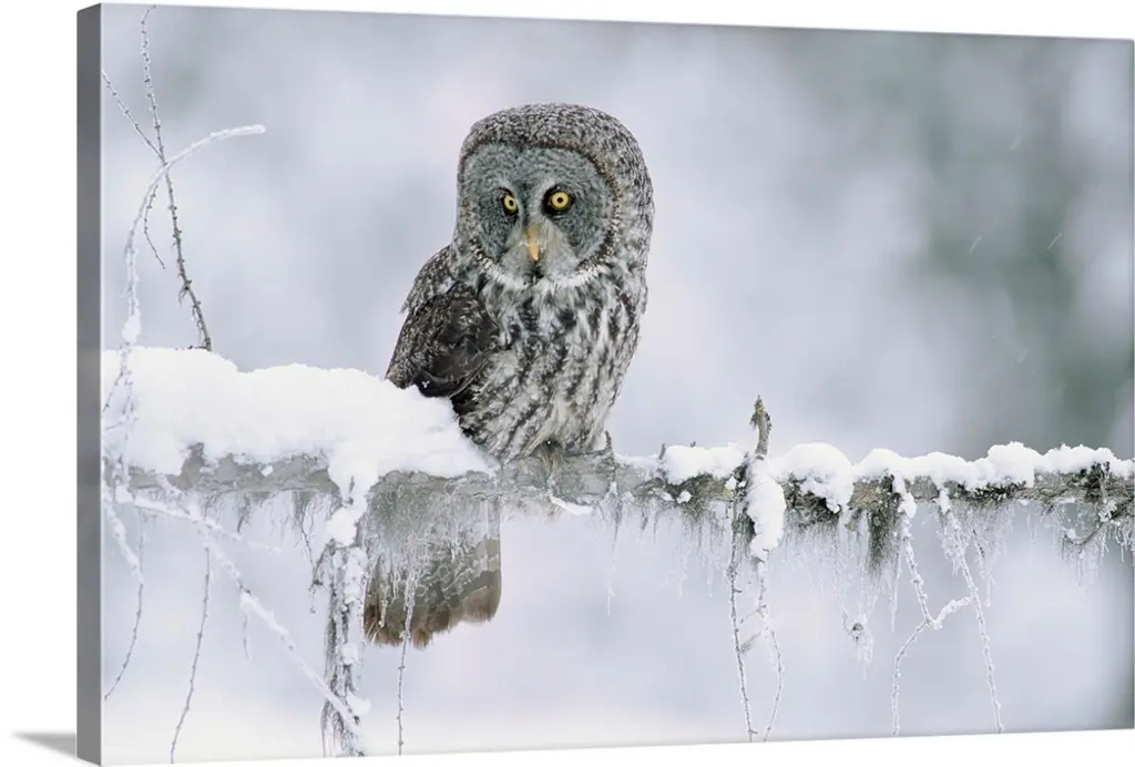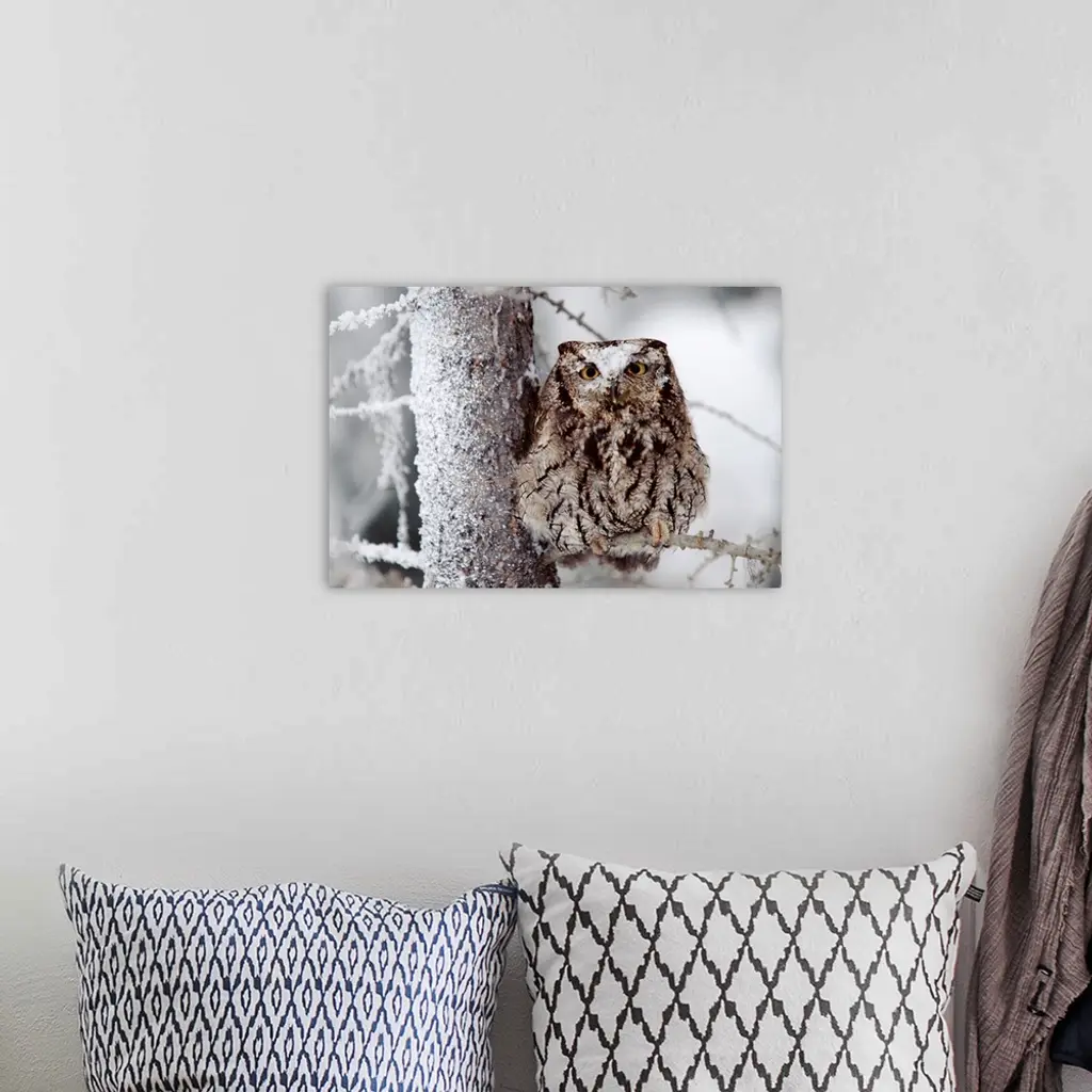 Western Screech Owl perching in a tree with snow on its head, British Columbia, Canada wall art for home and office decor. Discover canvas art prints, photos, mural, big canvas art and framed wall art in GreatBigCanvas.com's varied collections.