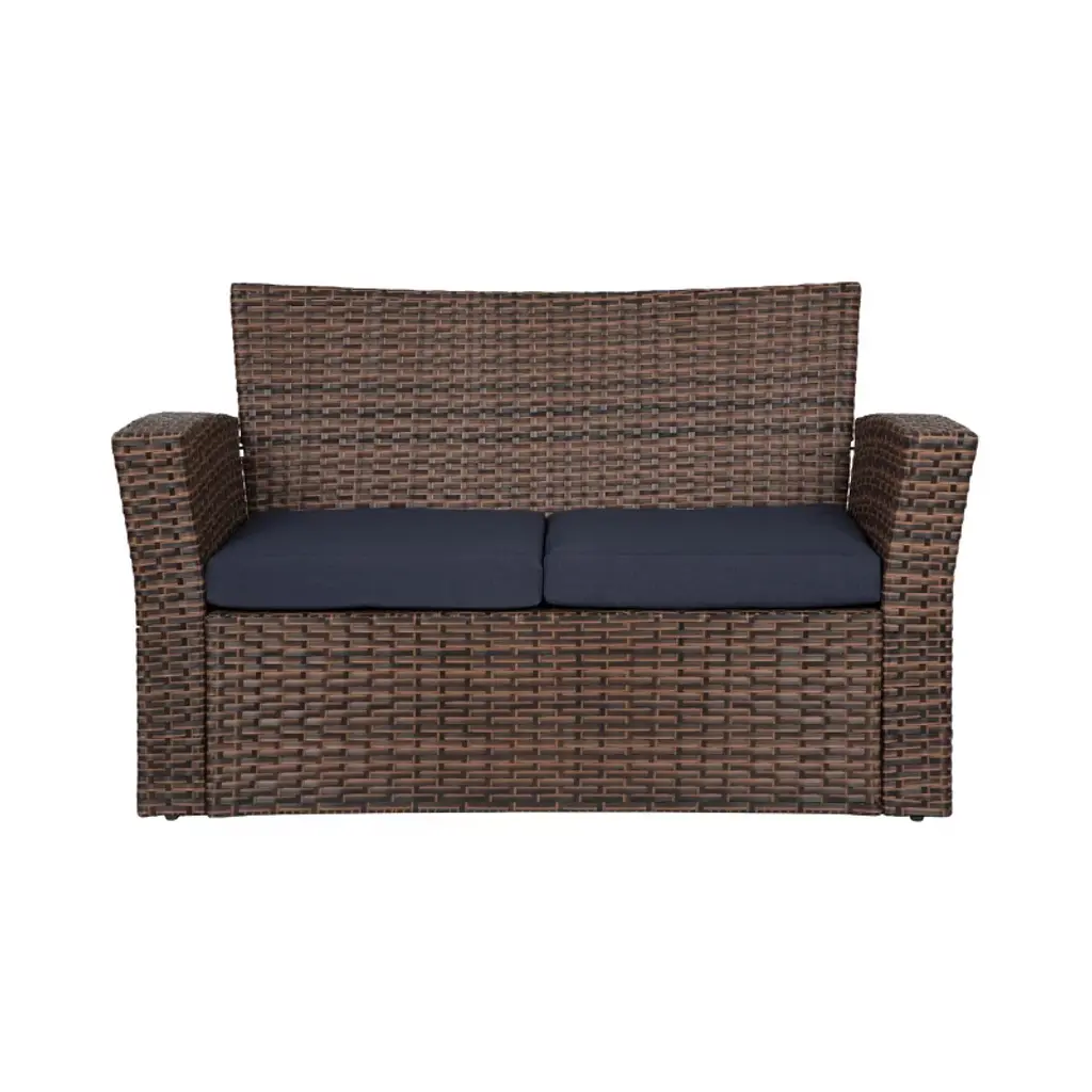 Westintrends 4 Piece Outdoor Wicker Rattan Conversation Sofa Set With Coffee Table, Brown/navy Blue