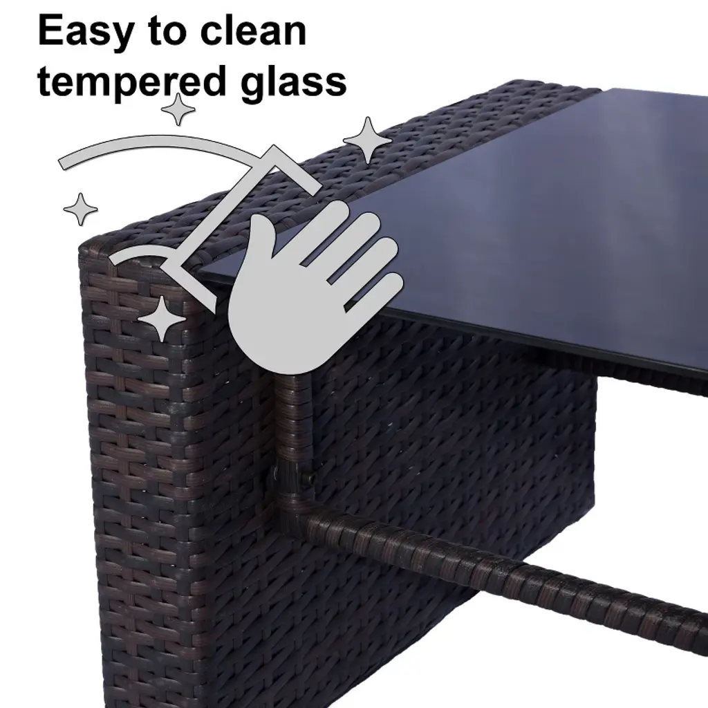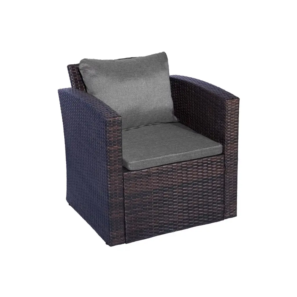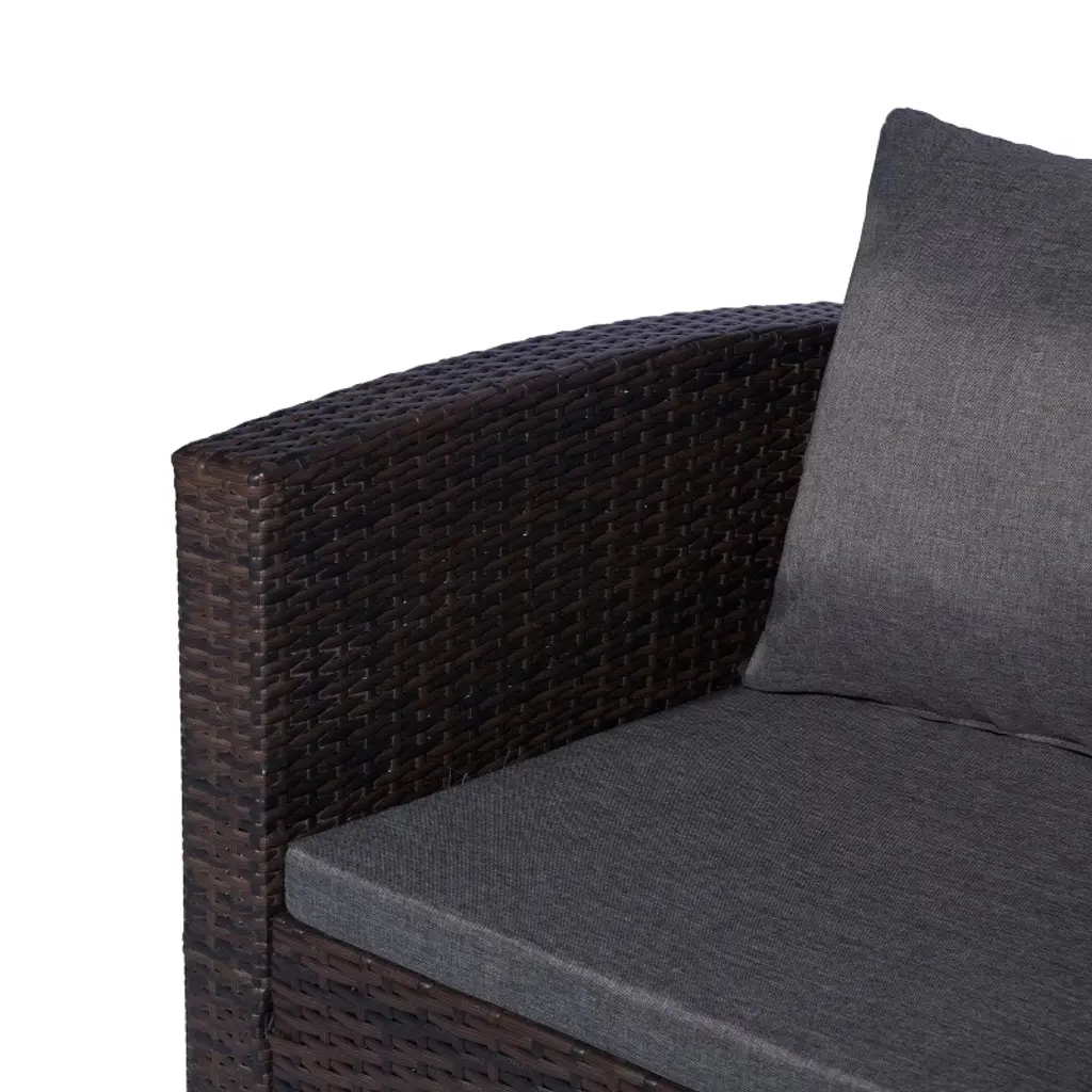 Enhance your patio with this exquisite and long-lasting 4-piece outdoor furniture ensemble that embodies exactly what you've been seeking. Crafted with a steel frame and rattan wicker material, it not only imparts unwavering stability but alleviates concerns about rain-induced dampness or sun-induced fading, promising lasting quality. The plush and breathable cushions deliver a serene rebound and utmost comfort, ensuring that you can relish moments of leisure and relaxation with your loved ones effortlessly. Its lightweight nature empowers you to effortlessly rearrange the rattan furniture to suit diverse settings.While we strive to accurately represent product colors, please be aware that actual colors may vary slightly due to individual screen settings and lighting conditions. FeaturesAll-weather Rattan WickerDurable steel framePlush polyester seat cushions and back pillowsUV and weather resistantMinimal maintenance neededAssembly requiredDetails:Product Type: Patio Conversation SetsWhat's Included: (2) Chair; (1) Loveseat; (1) TableChairDimensions: 28" W x 29" D x 29.5" HLoveseatDimensions: 49.5" W x 29" D x 29.5" HWeight Capacity: 600 lbs.TableDimensions: 32.25" W x 29.5" D x 13.75" HWeight Capacity: 110 lbs.
