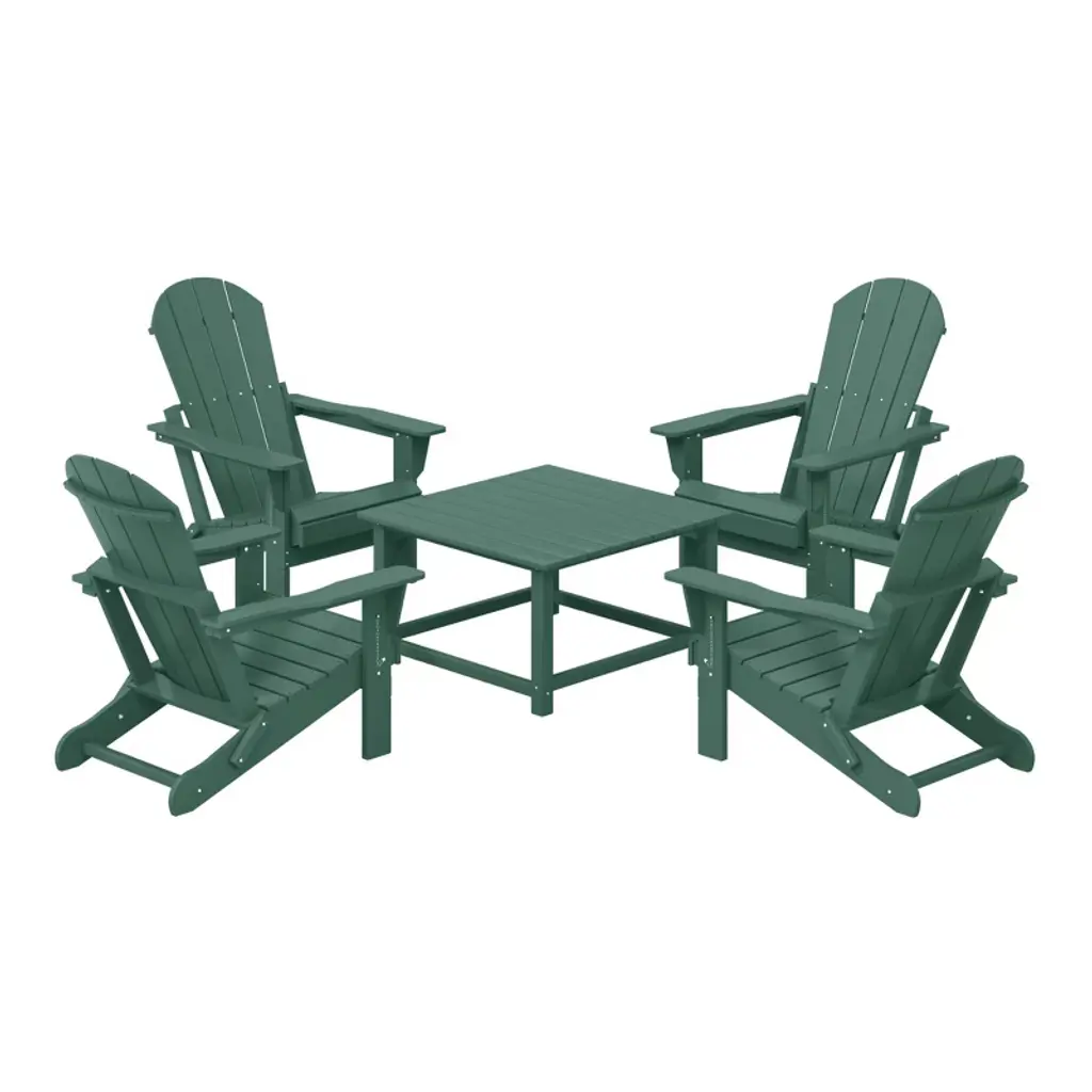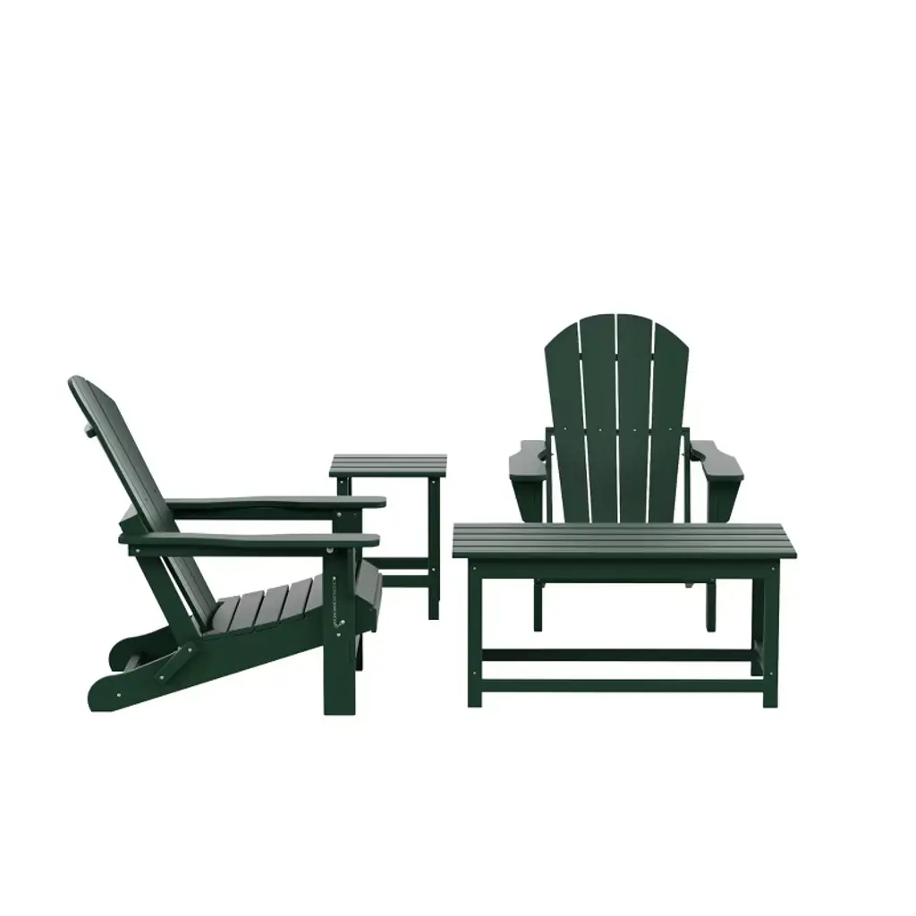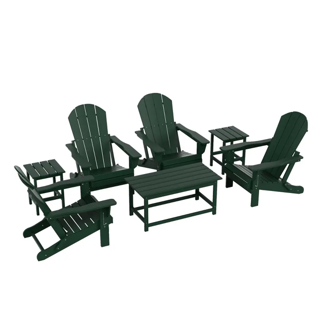 Westintrends 7 Piece Set Outdoor Folding Adirondack Chairs With Coffee Table Side Table, Dark Green