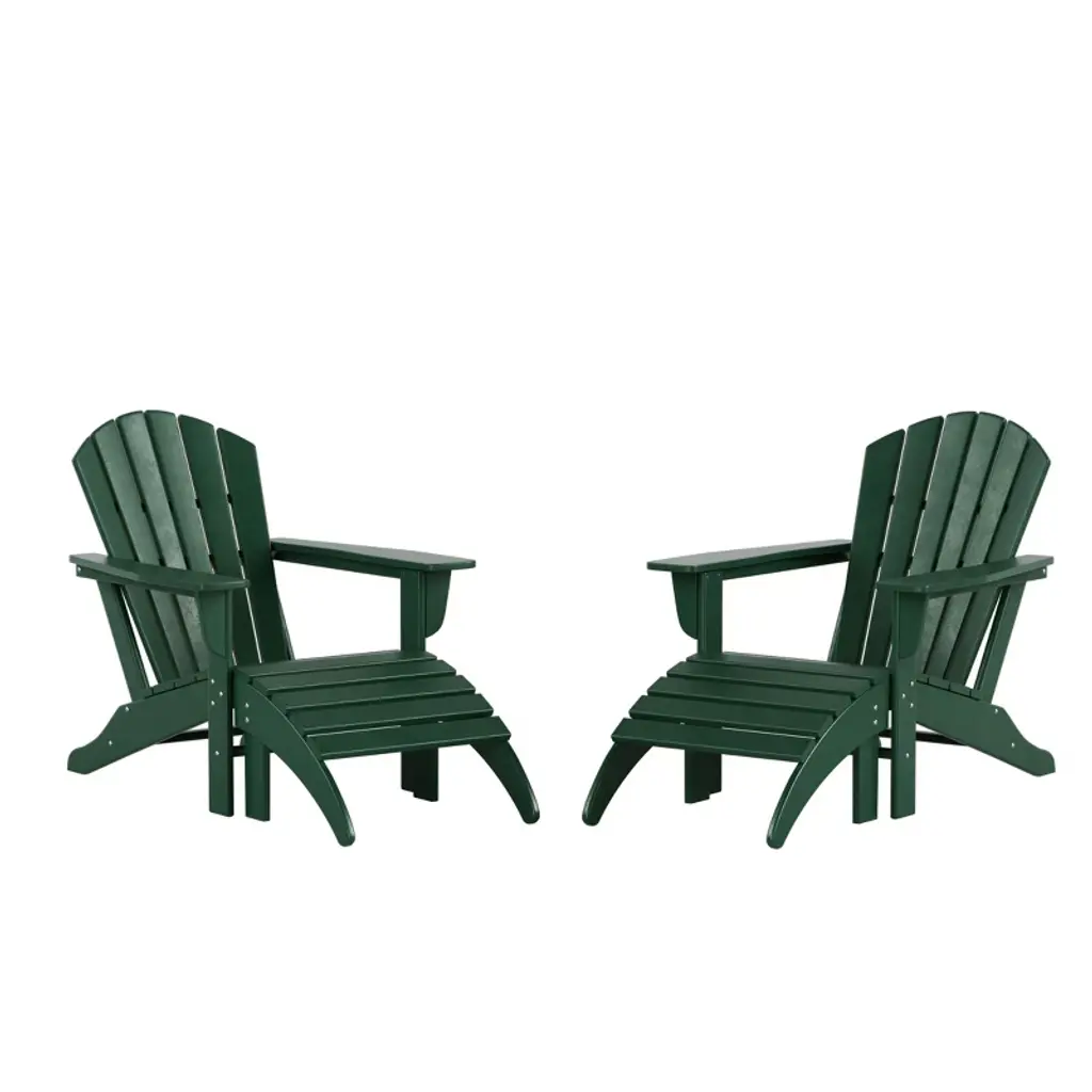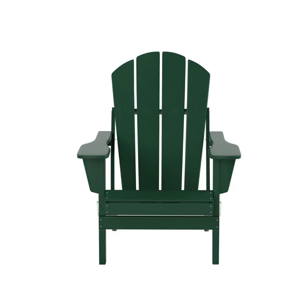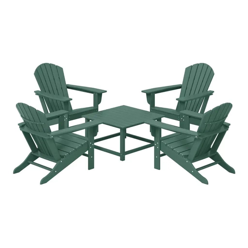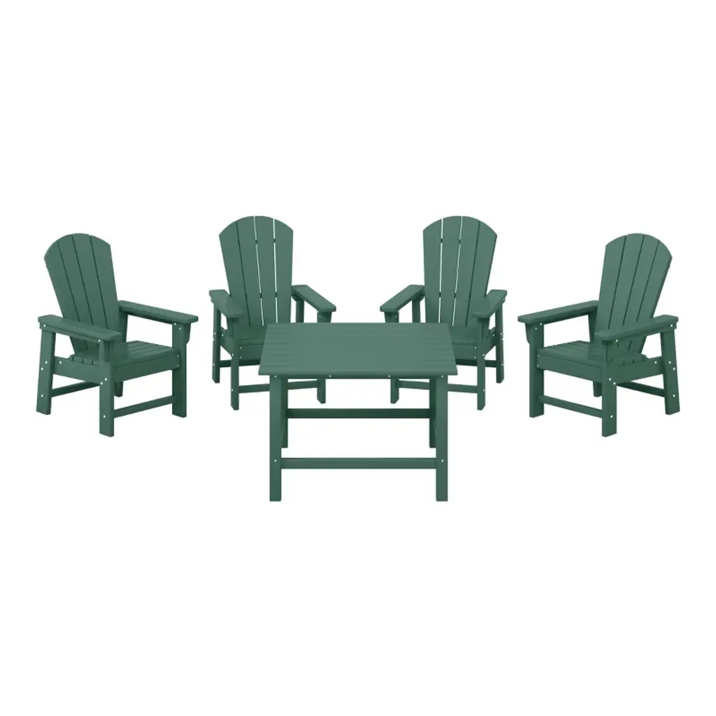 Westintrends 7 Piece Set Outdoor Folding Adirondack Chairs With Coffee Table Side Table, Dark Green