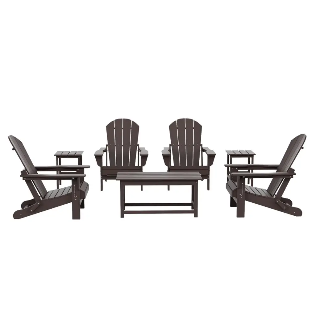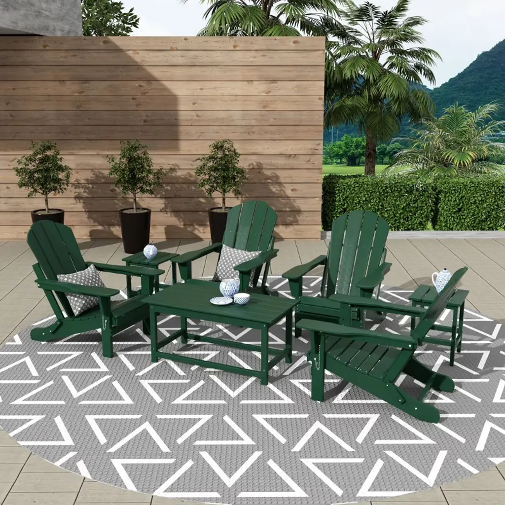Gather friends and family around the patio this season with this amazing conversation set. Each piece is made with solid, weather-resistant, and UV-resistant HDPE lumber that's perfect for the outdoors and will keep its vibrant color all season long. Unlike natural wood, the HDPE material prevents splinters, cracks, chips, and peeling making the set last for seasons to come. This set is perfect for adding comfort and style to your patio.While we strive to accurately represent product colors, please be aware that actual colors may vary slightly due to individual screen settings and lighting conditions. FeaturesSet includes: four (4) Adirondack chairs, two (2) side tables, one (1) coffee tableDurable solid HDPE constructionWeather and UV resistant treated HDPE lumberWide seat and curved backrest adirondack chairsFade resistant chairs to keep vibrant color all season longDurable design prevents splinters, cracks, or peelingSimple to assembleDetails:Product Type: Patio Conversation SetsWhat's Included: (4) Adirondack Chair; (2) Side Table; (1) Coffee TableAdirondack ChairDimensions: 29" W x 31.5" D x 34.5" HWeight: 32.75 lbs.Seat Width: 20.25"Seat Depth: 20"Seat Height: 14.5"Weight Capacity: 450 lbs.Coffee TableDimensions: 35.25" W x 17.5" D x 16" HWeight: 21 lbs.Table Top Width: 14"Table Top Depth: 14"Table Top Thickness: 0.5"Weight Capacity: 220 lbs.Side TableDimensions: 14" W x 14" D x 18" HWeight: 9 lbs.Table Top Width: 14"Table Top Depth: 14"Table Top Thickness: 0.5"Weight Capacity: 180 lbs.