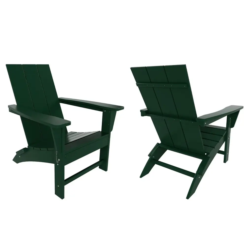 This two contemporary outdoor folding chair set has a contoured seat for ultimate comfort. Built to withstand a range of climates including hot sun, snowy winters, and strong coastal winds. UV protectant color to keep its rich vibrant colors for many years of use. These outdoor chair are the perfect addition to any porch, patio, or veranda. Cleans easily with soap, water, and a soft-bristle brush. These well-constructed patio chairs have marine-grade quality hardware. Ideal for lounging outdoors or in your favorite indoor spot. Multi-functional because it can also be used indoors. Let your outdoor living experience flourish when you invest in this solid plastic folding chair. Available in easy to match color options.While we strive to accurately represent product colors, please be aware that actual colors may vary slightly due to individual screen settings and lighting conditions. FeaturesSet includes: two (2) Adirondack chairsDurable HDPE Plastic ConstructionContoured seat, wide armrest, high backrestMade with Weather & UV Resistant MaterialsEco-Friendly and environmentally stable HDPE Plastic, giving off no harmful fumesUV-treated to resist fading to keep vibrant color all season longFoldable for easy storageDetails:Product Type: Adirondack ChairsWhat's Included: (2) Adirondack ChairAdirondack ChairDimensions: 30" W x 32" D x 35.5" HWeight: 39.25 lbs.Seat Width: 20.5"Seat Depth: 20"Seat Height: 15"Weight Capacity: 450 lbs.