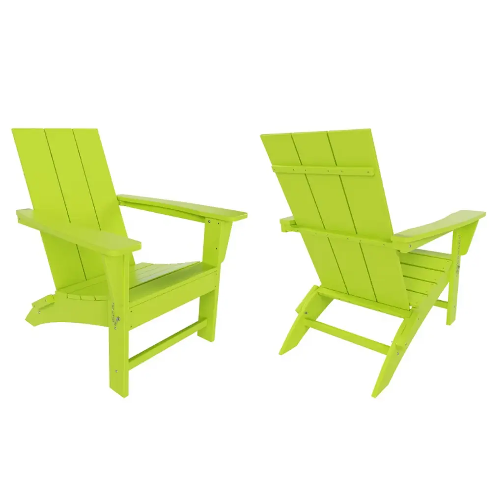 This two contemporary outdoor folding chair set has a contoured seat for ultimate comfort. Built to withstand a range of climates including hot sun, snowy winters, and strong coastal winds. UV protectant color to keep its rich vibrant colors for many years of use. These outdoor chair are the perfect addition to any porch, patio, or veranda. Cleans easily with soap, water, and a soft-bristle brush. These well-constructed patio chairs have marine-grade quality hardware. Ideal for lounging outdoors or in your favorite indoor spot. Multi-functional because it can also be used indoors. Let your outdoor living experience flourish when you invest in this solid plastic folding chair. Available in easy to match color options.While we strive to accurately represent product colors, please be aware that actual colors may vary slightly due to individual screen settings and lighting conditions. FeaturesSet includes: two (2) Adirondack chairsDurable HDPE Plastic ConstructionContoured seat, wide armrest, high backrestMade with Weather & UV Resistant MaterialsEco-Friendly and environmentally stable HDPE Plastic, giving off no harmful fumesUV-treated to resist fading to keep vibrant color all season longFoldable for easy storageDetails:Product Type: Adirondack ChairsWhat's Included: (2) Adirondack ChairAdirondack ChairDimensions: 30" W x 32" D x 35.5" HWeight: 39.25 lbs.Seat Width: 20.5"Seat Depth: 20"Seat Height: 15"Weight Capacity: 450 lbs.