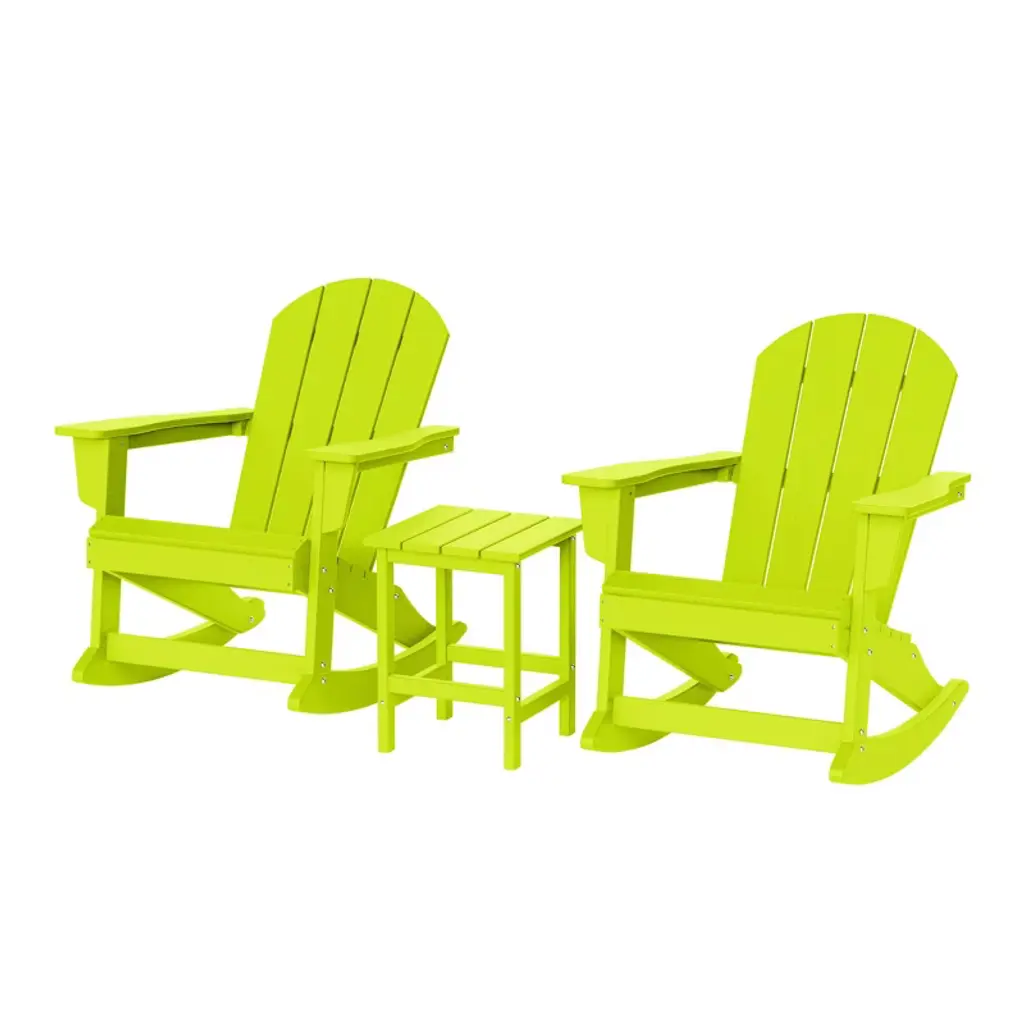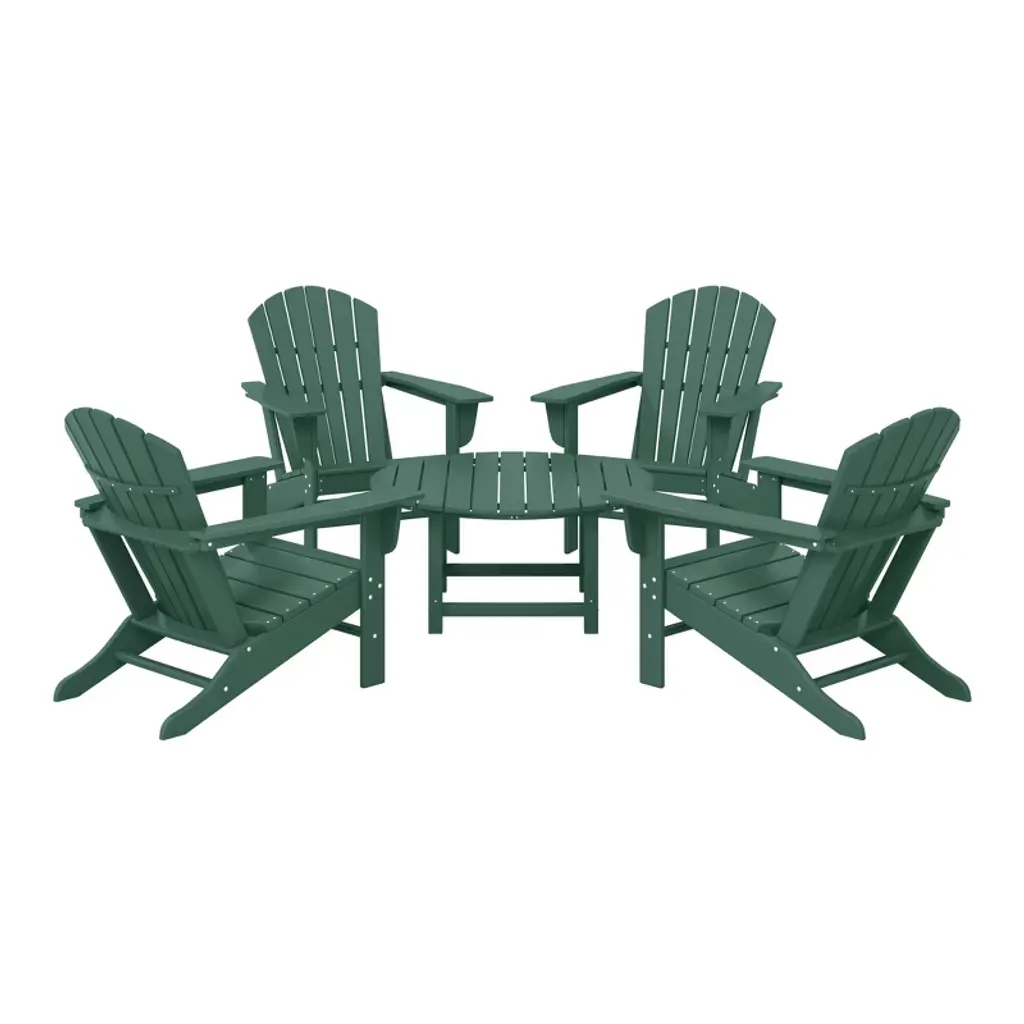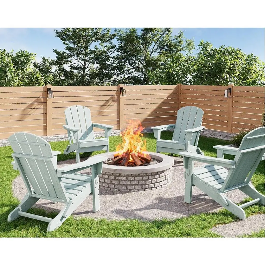 Get together with friends and family this season around the fire pit with this beautiful 8-piece patio set. Each piece is crafted with eco-friendly HDPE lumber that is both perfect for the environment and durable. Perfect for the outdoors with a UV and weather-resistant material that helps protect the set from harsh outdoor elements like the sun, snow, and rain. Sit and relax in comfort with the wide seat and armrest and the slight contoured seat. Put the chairs away with ease with the foldable design to make more space whenever needed.While we strive to accurately represent product colors, please be aware that actual colors may vary slightly due to individual screen settings and lighting conditions. FeaturesSet includes: Eight (8) foldable Adirondack chairsMade with Eco-friendly HDPE plasticWeather and UV resistantance protects from the harsh outdoor weatherFade resistant colors to keep that vibrant colorPremium materials prevent cracks, chips, or peelingFoldable chairs for easy storage and move aroundRust resistant stainless steel hardwareDetails:Product Type: Adirondack ChairsWhat's Included: (8) Adirondack ChairAdirondack ChairDimensions: 30" W x 32" D x 35.5" HWeight: 39.25 lbs.Seat Width: 20.5"Seat Depth: 20"Seat Height: 15"Weight Capacity: 450 lbs.