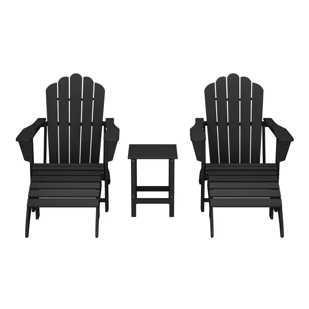 Westintrends Highland 3-piece Adirondack Chairs With Cup Holders And Coffee Table Set, Black