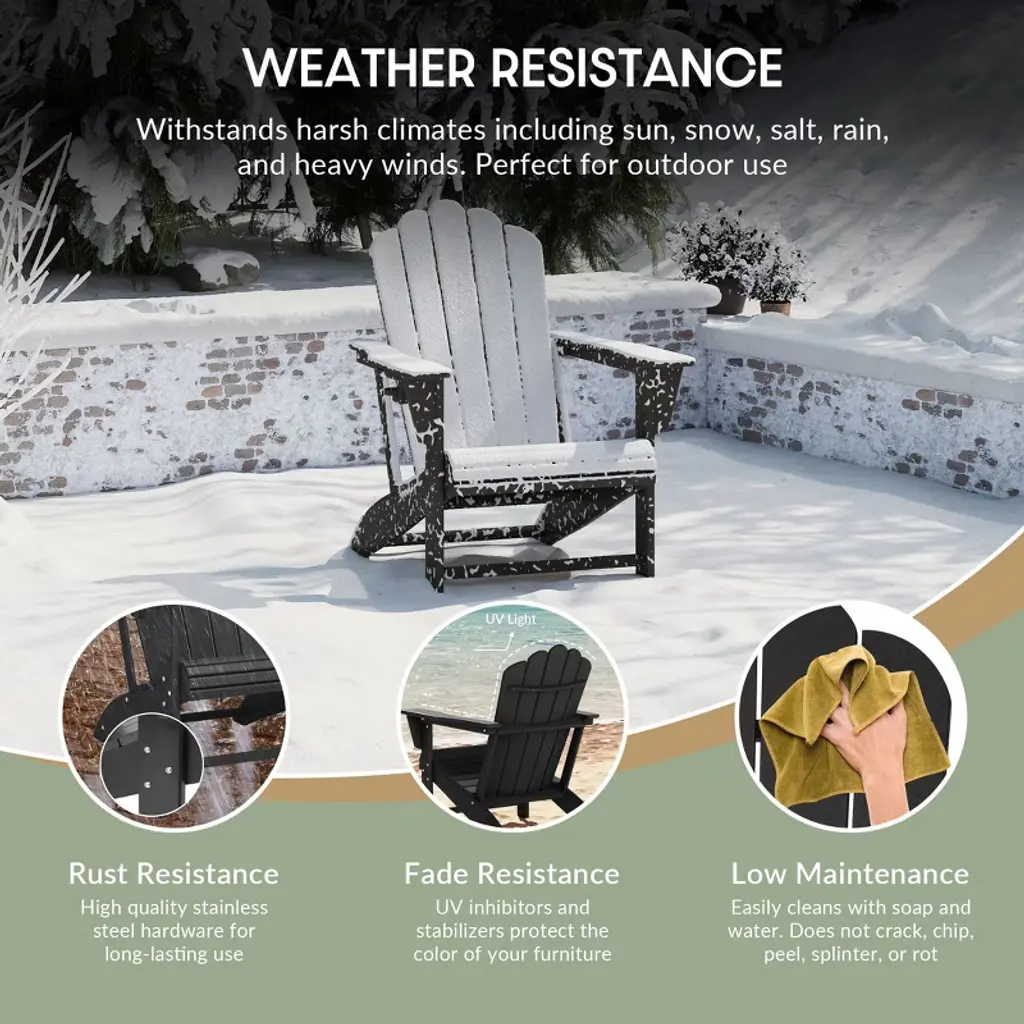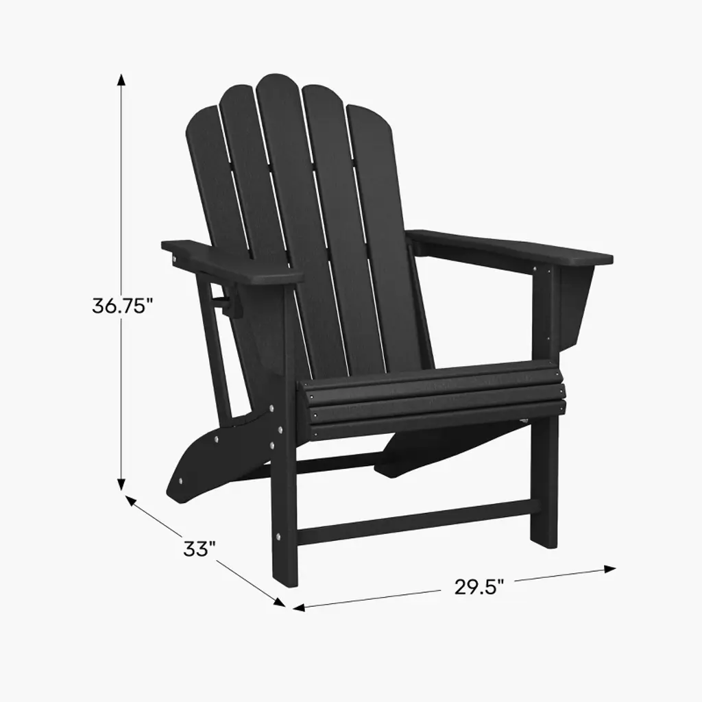 Relax in style with our 5-piece Adirondack chair with cup holder, ottoman, and side table set for ultimate convenience. Crafted from durable, weather-resistant, UV and fade-resistant HDPE, this chair is designed to withstand the elements and provide lasting comfort. The contoured seat with the waterfall and backrest offer optimal support, while the hidden cup holder keeps your drink within reach and a the helpful patio side table can hold extra drinks or snacks.While we strive to accurately represent product colors, please be aware that actual colors may vary slightly due to individual screen settings and lighting conditions. FeaturesSet Includes: Two (2) Adirondack Chairs with Cup Holder, Two (2) Folding Ottomans, One (1) Patio Side TableConstructed from Durable HDPE Material and Designed to be Stable and SturdyWeather Resistant to Protect Against the Harsh Outdoor ElementsFade and UV Resistant to Protect Against the SunHidden Cup Holder to Hold Your Drinks on Those Warm or Cold Afternoons and Can be Hidden for a More Classic Adirondack Chair Look and a 14" Inch Side Table for Plenty of Space for More Drinks or Snacks20" Inch Wide Inclined Seat for a Spacious Seat wth a Contoured Seat and Waterfall Front to Relieve Pressue on the Back of Your Knees and Curved BackrestFoldable Ottoman for Easy Storage Under the ChairDetails:Product Type: Patio Conversation SetsWhat's Included: (2) Adirondack Chair; (2) Ottoman; (1) Side TableAdirondack ChairDimensions: 29.5" W x 33" D x 36.75" HWeight: 38 lbs.Seat Width: 20.75"Seat Depth: 19.5"Seat Height: 15"Weight Capacity: 450 lbs.OttomanDimensions: 20" W x 13.5" D x 18.75" HWeight: 8.75 lbs.Table Top Width: 14"Table Top Depth: 14"Table Top Thickness: 0.5"Side TableDimensions: 14" W x 14" D x 18" HWeight: 9 lbs.Table Top Width: 14"Table Top Depth: 14"Table Top Thickness: 0.5"Weight Capacity: 180 lbs.