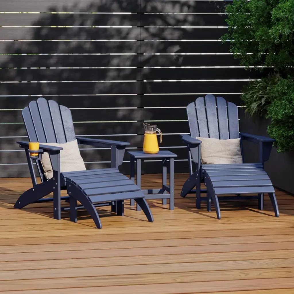 Westintrends Highland 5-piece Adirondack Chair With Folding Ottoman And Table Set, Navy Blue