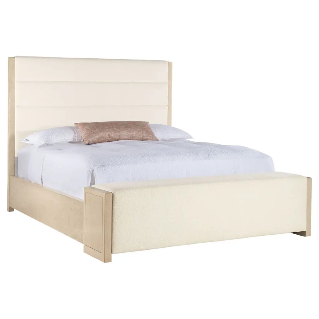 The Westwood Upholstered Bed brings a serene blend of modern design and timeless elegance to your bedroom. Featuring performance fabric upholstery with a horizontal fabric channel design, this bed exudes understated luxury. Made from quartered oak veneers with a polished finish, the bed includes a headboard, footboard, and rails, offering versatility with the option to use the headboard alone. Perfect for those seeking comfort and refined aesthetics, this bed is ideal for creating a stylish, contemporary bedroom sanctuary.
