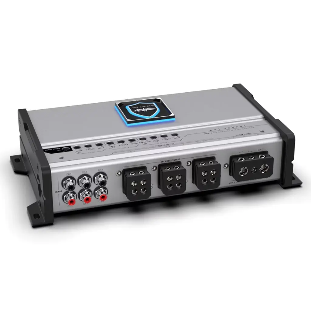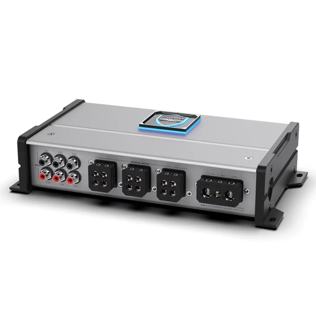 Introducing the Wet Sounds HTM Series Amplifiers, the ultimate solution for extreme audio applications. Designed with precision and engineered for performance, HTM Series is equipped with Class-D power supplies, ensuring superior efficiency and extreme power output packed into a compact and sleek chassis. This amplifier is built to handle the most demanding environments, providing unparalleled reliability and robust performance. HTM also features full range audio capability, delivering crystal-clear sound across all frequencies. With selectable crossovers, including high-pass, low-pass, and full range options, you have the flexibility to customize your audio experience to perfection. The amplifier's removable power and speaker connectors make installation and maintenance a breeze, while the blue LED back-lit badge adds a touch of style and indicates power status at a glance. Designed with a reduced height from previous HTX models, HTM will fit seamlessly into tighter spaces without sacrificing performance. The versatile badging can be mounted horizontally or vertically, and optional mounting feet allow for easy elevation from the mounting surface, providing additional installation options. Whether you're an audiophile seeking top-notch sound quality or need a reliable amplifier for extreme applications, the Wet Sounds HTM Series Amplifier is your go-to choice. Experience the perfect blend of power, performance, and convenience with this exceptional amplifier. Upgrade your audio system today and enjoy an unparalleled listening experience. Specifications: Channels: 6 RMS Power @ 4Ω Stereo: 85W X 6 RMS Power @ 2Ω Stereo: 150W x 6 RMS Power @ 4Ω Bridged: 300W X 3 Adjustable X-Over Range: 50 Hz - 500 Hz S/N (Awtg-MAX Output): 95dB Frequency Response -3dB: 20 Hz - 20 kHz Input Sensitivity: 350 mVrms - 6 Vrms Sub Sonic: 10 Hz - 55 Hz (CH. 5/6) Selectable Crossover: Full / HP / LP IP Rating: IPX5