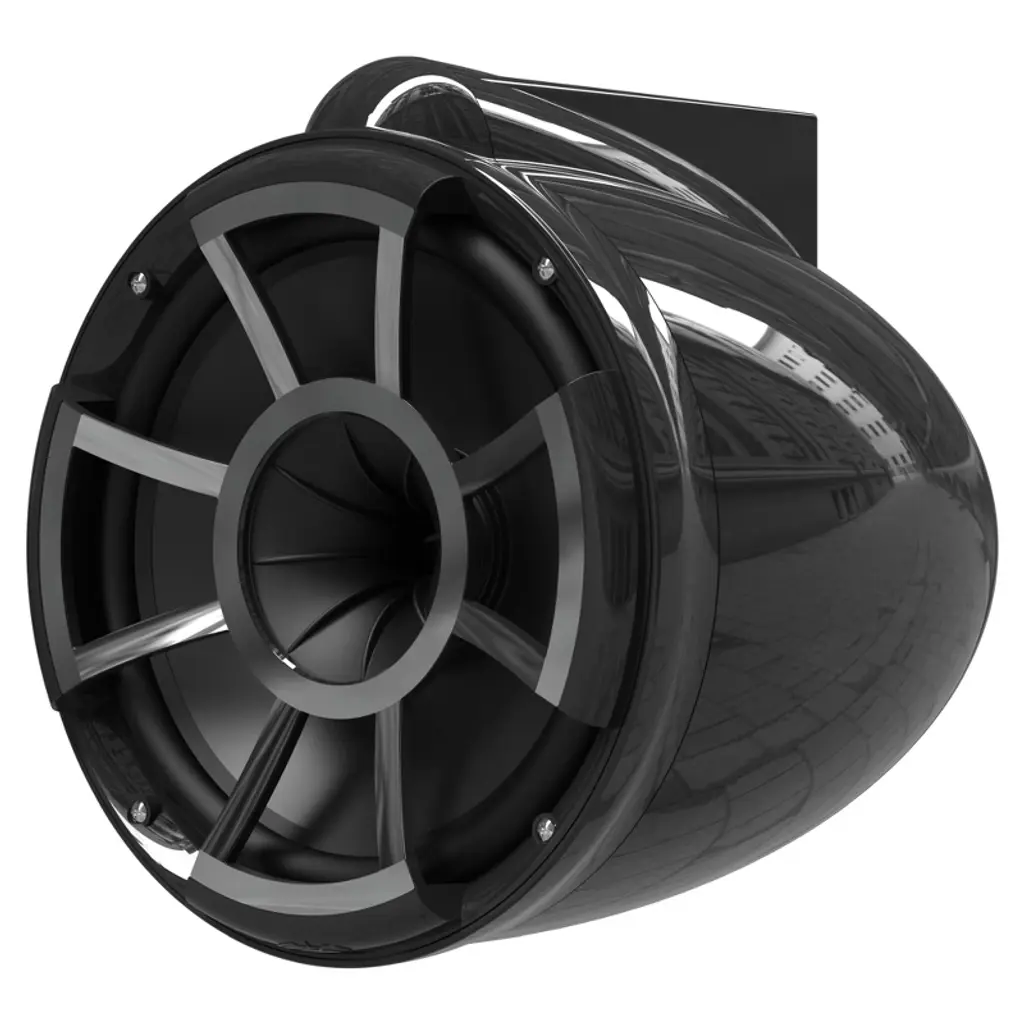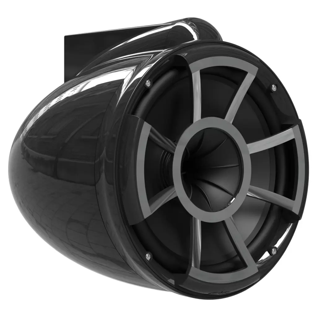 Wet Sounds - REV 10 Fixed Aluminum Clamp 10-Inch Tower Speakers - Black (Pair) The Revolution™ Series uses our proprietary REV TEC™ technology. Unlike most conventional designs, REV TEC technology provides remarkable volume and amazing full range sound quality on axis and off axis at long distances. Extensive acoustic testing has confirmed these speakers ability to project volume at 80 feet and beyond without any loss of detail or information. Not only does the Revolution series achieve volume and sound quality at a minimum of 80 ft, but with the REV TEC technology the rider can enjoy quality sound while riding outside the wake and being almost parallel to boat. Sold in pairs. Specs - • Impedance: 4 ohms • RMS Watts: 300 • PEAK Watts: 600 • Frequency Response: 20Hz to 20KHZ • Sensitivity: 92 db at 1watt/1 meter • Mid Bass: 10 inch Kevlar reinforced EFG™ cone woofers with polyurethane surround. • High Frequency: Pro-Axial™ Driver - Coaxially mounted Titanium Diaphragm High Output. Size & Weight - • Front-Back: 13" (330.20mm) • Hang Height 11 9/16" (293.68mm) • Width: 10 5/8" (269.87mm) • Hang Weight: 14.8 pounds / 6.71 kg each • Note: All specifications are for each REV10 enclosure