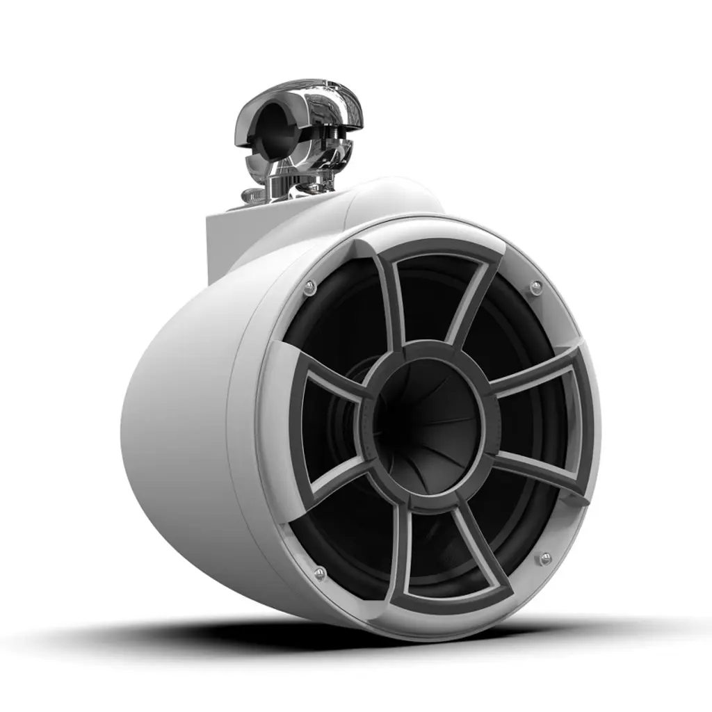 Wet Sounds REV 10 SE W - White REV10 Special Edition - Revolution Series 10" Tower Speakers with TC3 MINI Swivel Clamps Upgrade your audio experience with the Wet Sounds REV 10 SE W Special Edition Tower Speakers in Matte White. Designed for marine and powersport use, these high-performance speakers deliver powerful, crystal-clear sound that carries over long distances—even in demanding outdoor conditions. With a sleek, durable design and cutting-edge audio technology, they provide an unbeatable combination of style and performance. • 10" Kevlar-reinforced EFG™ cone woofers with durable polyurethane surrounds for deep, punchy bass • Pro-Axial™ driver with titanium diaphragm and horn-loaded compression driver for crisp highs • Matte White finish for a sleek, rugged aesthetic that complements any setup • Built for the elements – water-resistant, UV-protected, and engineered for extreme conditions • Compatible with Wet Sounds mounts, clamps, and adaptors for seamless installation Specifications: • RMS Power: 300W | Peak Power: 600W • Impedance: 4Ω | Frequency Response: 80Hz - 20kHz | Sensitivity: 92dB • Dimensions: Hang Height: 13.91" | Width: 10.625" | Depth: 13" • Weight: 15 lbs each Paired with Wet Sounds TC3 MINI Swivel Clamps, these speakers can be securely mounted to 1" to 1-7/10" tubing with a swivel design for optimal positioning. The stainless-steel construction ensures durability, keeping your speakers locked in place even in rough waters or rugged terrains. With exceptional sound clarity, rugged durability, and a premium aesthetic, the REV 10 SE W Tower Speakers with TC3 MINI Swivel Clamps are the perfect choice for those who demand the best in marine and powersport audio.