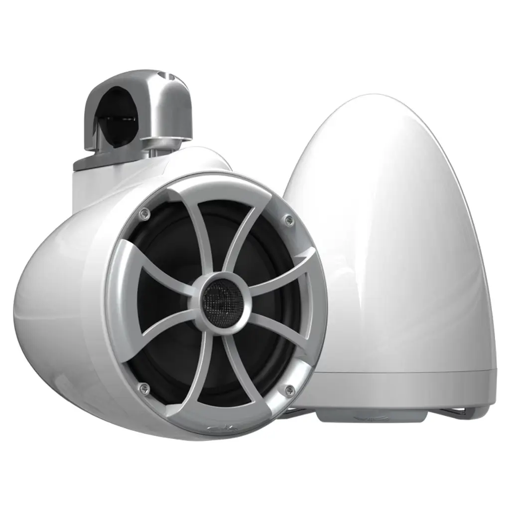 Wet Sounds REV 8 SE W - White REV8 Special Edition - Revolution Series 8" Tower Speakers with Swivel Clamps Upgrade your marine or powersport audio system with the Wet Sounds REV 8 SE W Special Edition Tower Speakers in Matte White. Engineered for powerful, crystal-clear sound, these speakers ensure high-performance audio that projects over long distances, even in harsh outdoor conditions. The sleek, modern white finish adds a premium touch to any setup. • 8" Kevlar-reinforced EFG™ cone woofers with durable polyurethane surrounds for deep, punchy bass • Pro-Axial™ driver with titanium diaphragm and horn-loaded compression driver for crisp highs • Matte White finish for a clean, stylish, and durable aesthetic • Built to withstand the elements – water-resistant, UV-protected, and rugged for extreme conditions • Compatible with Wet Sounds mounts, clamps, and adaptors for seamless installation Specifications: • RMS Power: 200W | Peak Power: 400W • Impedance: 4Ω | Frequency Response: 20Hz - 20kHz | Sensitivity: 92dB • Dimensions: Hang Height: 11.74" | Width: 8.75" | Depth: 11.5" • Weight: 13 lbs each Paired with Wet Sounds Swivel Clamps, these speakers provide versatile mounting with a secure fit on 1-7/8" to 3" tubing. The stainless-steel swivel design allows for optimal speaker positioning, ensuring the best sound projection for REV8, REV10, and ICON8 Tower Speakers. With premium audio performance, rugged durability, and a sophisticated look, the REV 8 SE W Tower Speakers with Swivel Clamps are the ultimate solution for high-end marine and outdoor sound systems.