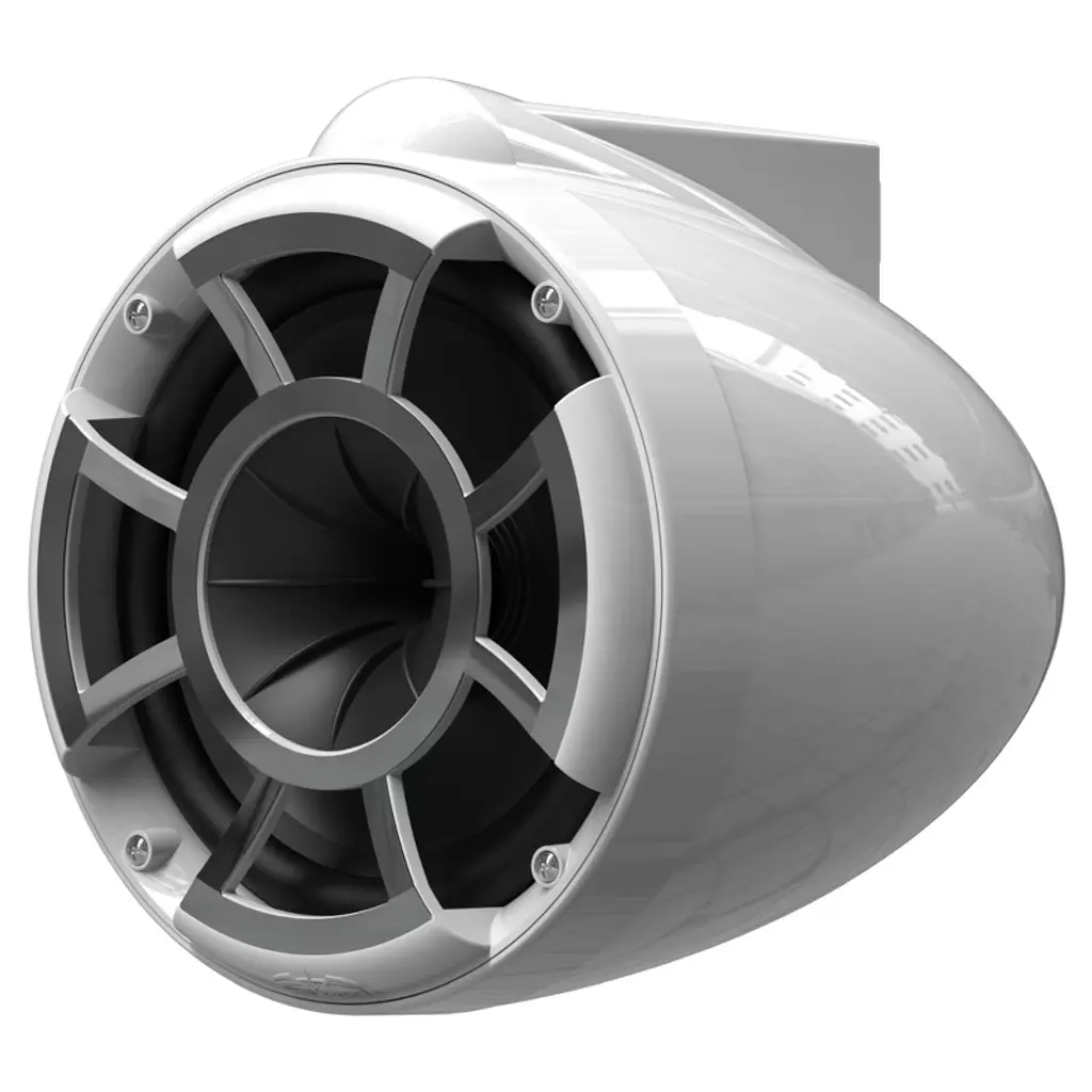 Wet Sounds - REV 8 Fixed Aluminum Clamp 8-Inch Tower Speakers - White (Pair) The Revolution™ Series uses our proprietary REV TEC™ technology. Unlike most conventional designs, REV TEC technology provides remarkable volume and amazing full range sound quality on axis and off axis at long distances. Extensive acoustic testing has confirmed these speakers ability to project volume at 80 feet and beyond without any loss of detail or information. Not only does the Revolution series achieve volume and sound quality at a minimum of 80 ft, but with the REV TEC technology the rider can enjoy quality sound while riding outside the wake and being almost parallel to boat. Sold in pairs. Specs • Impedance: 4 ohms • RMS Watts: 200 • PEAK Watts: 400 • Frequency Response: 20Hz to 20KHZ • Sensitivity: 92 db at 1watt/1 meter • Mid Bass: 8 inch Kevlar reinforced EFG™ cone woofers with polyurethane surround. • High Frequency: Pro-Axial™ Driver - Coaxially mounted Titanium Diaphragm High Output Horn Loaded Compression Driver Size & Weight • Front-Back: 11 1/2" (292.10mm) • Hang Height 9 9/16" (242.88mm) • Width: 8 3/4" (222.25mm) • Hang Weight: 12.8 pounds / 5.80 kg each • Note: All specifications are for each REV8 enclosure