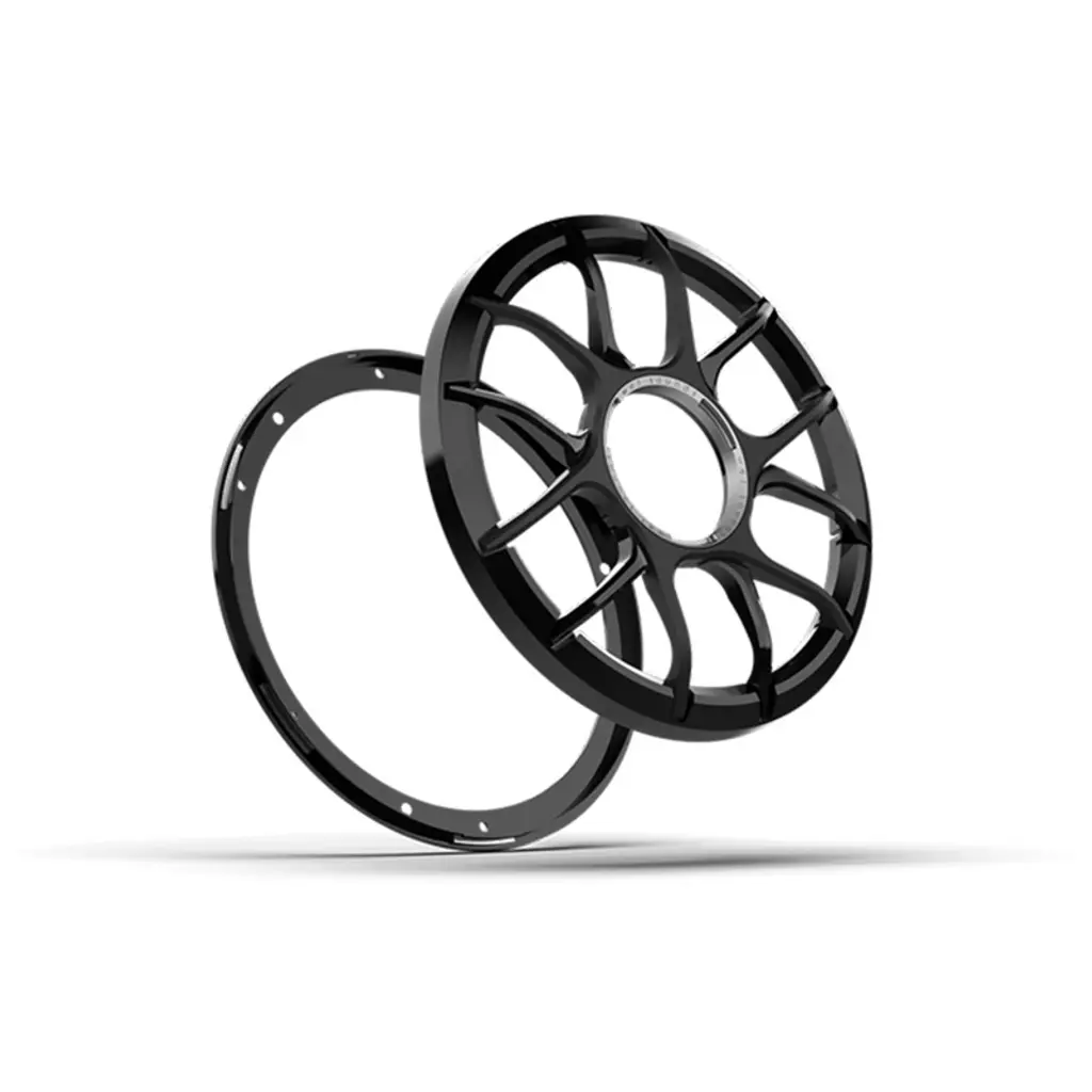 This bundle features a Wet Sounds REVO 10 HP S4 V3 Subwoofer in black and a Wet Sounds REVO 10 ADP XZ-B Grille Kit. The subwoofer is designed for marine use with a Nylas™ Composite Frame, Santoprene™ components, and improved rear venting. It offers 400W RMS power, 4Ω impedance, and a frequency response of 20Hz - 200Hz. The subwoofer has a 10" size, 2.5" voice coil, and 9.45" hole cut-out size, making it suitable for ported enclosures. The grille kit features a new XZ design in black, along with a mounting ring and rubber gasket. Upgrade your audio system with this high-performance subwoofer and grille kit bundle from Wet Sounds, ideal for marine applications. Enjoy deep, clear bass with the durable and weather-resistant construction of the REVO 10 HP S4 V3 subwoofer. The Nylas™ Composite Frame and Santoprene™ components ensure longevity and reliability, even in harsh marine environments. With a power rating of 400W RMS and 800W peak, this subwoofer delivers powerful sound performance. Its sleek black design adds a stylish touch to your audio setup. The included XZ-Black Grille Kit provides added protection and a modern look to your subwoofer. Upgrade your sound system today with this premium bundle from Wet Sounds.