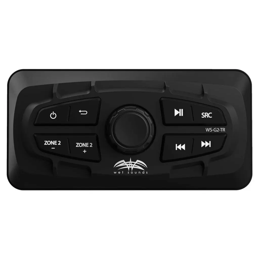 WS-G2-TR | Wet Sounds Wired Transom Remote You may find yourself wanting more control of your WS-MC-20 unit in more places than one. The new, compact Wet Sounds WS-G2-TR Transom Remote will give you a secondary control over your WS-MC-20. Easily mount the WS-G2-TR in the desired location and plug in the proprietary 23' cable and your good to go! It's that easy. Compatible with the WS-MC-20 Source Unit, Connect 2 WS-G2-TR's using the optional WS-G2-TR-YADP cable. Features: • Controls Volume/Zone 2 Level/Track/Play/Source/Power • 23’ Extension Cable Included • Back-Lit Buttons • Rotary Encoder Volume Knob • Marine Grade Contruction • Can Be Combined With Additional 23’ Extention Cable (Sold Seperately) For Increased Distance • Can Connect Up To 2 WS-G2-TR's to the WS-MC-20 Receiver using the WS-G2-TR-YADP Specifications: • Dimensions - 5.20" W x 2.57" H x 2.55" D • For Use With - WS-MC-20 Source Unit • Controls - Volume/Zone 2 Level/Track/Play/Source/Power • Max Mounting Distance from WS-MC-20 - 50 Foot