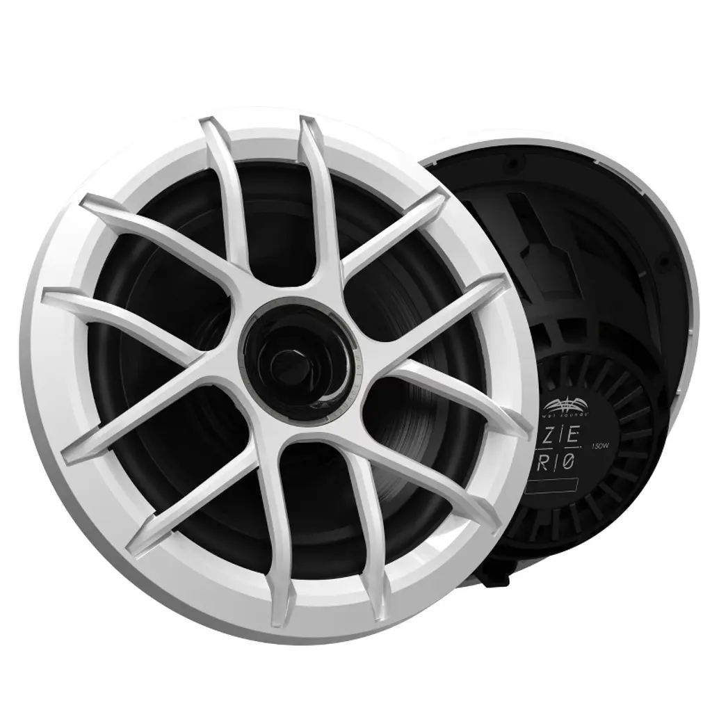 The ZERO Series is a first of its kind innovation for Wet Sounds, taking the legendary REV tower speaker performance and reimagining it for optimal use in more confined spaces. The high output in small, sealed enclosures means ZERO Series allows for ZERO compromises. These speakers can also be used with or without a twist-lock grille, making them ideal for both custom and OEM replacement applications. The ZERO Series speakers and subwoofers utilize materials such as Nylas, a composite of nylon and fiberglass, providing improved stability and superior strength versus conventional speaker materials. Features: • Shallow mount design • Twist-lock grille to hide mounting hardware • Available in a 2 tone gloss/matte finish in black or white • Install with or without grille • Incorporated motor heatsink • High Strength Nylas Composite Frame • Rigid PMGS Composite Cone • TPR Surround Suspension System • Reinforced Nomex Aramid Spider • Oversized Neo motors for high power handling • Horn-loaded tweeter • Optimized for the demanding environments Specifications: Speaker Series: ZERO Tweeter Size: 1" Horn-Loaded Titanium Dome RMS Watts: 150W PEAK Watts: 300W Speaker Size: 8" Weight: 3.4 lbs (1.54 Kg) Impedance: 4Ω Mounting Depth: 3.32” (84.32 mm) Hole Cut Out: 7.36” (186.94 mm) Frequency Response: 55 Hz - 20 KHz Sensitivity: 91.5 dB at 1W/m Diameter: 8.96” w/grill (227.58 mm)