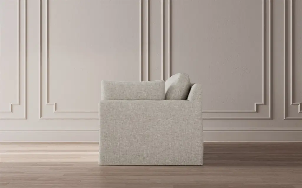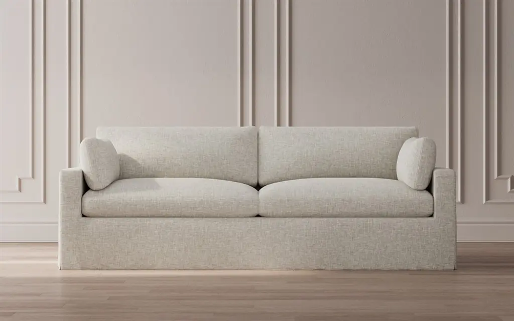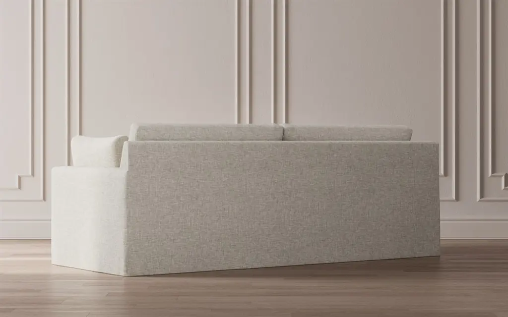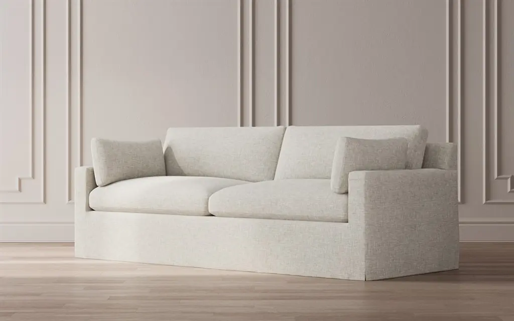 Designed with careful attention to detail, the 88" Weybridge slipcovered two-cushion sofa lends an air of relaxed elegance to any living space. Its gracious, modern silhouette features simple track arms, plush pillows, and a gently draped slipcover. Soft and supportive cushioning offers plush, cloud-like comfort, with a foam core surrounded by a blend of fiber, down, and feather fill. Choose from washable slipcover fabrics in a variety of serene hues.