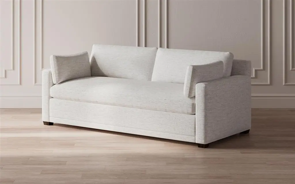 With balanced proportions, clean lines, and refined details, the 88” Weybridge bench cushion sofa is a perfect addition to any living space. Its simple, versatile silhouette features timeless track arms, plush pillows, and tapered wood legs. Soft and supportive cushioning offers plush, cloud-like comfort, with a foam core surrounded by a blend of fiber, down, and feather fill. Choose from a variety of upholstery options, including linen, velvet, and performance fabrics.