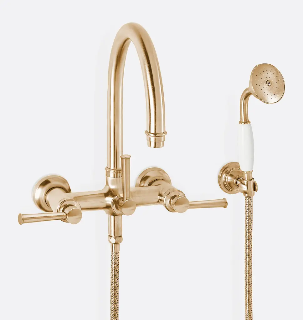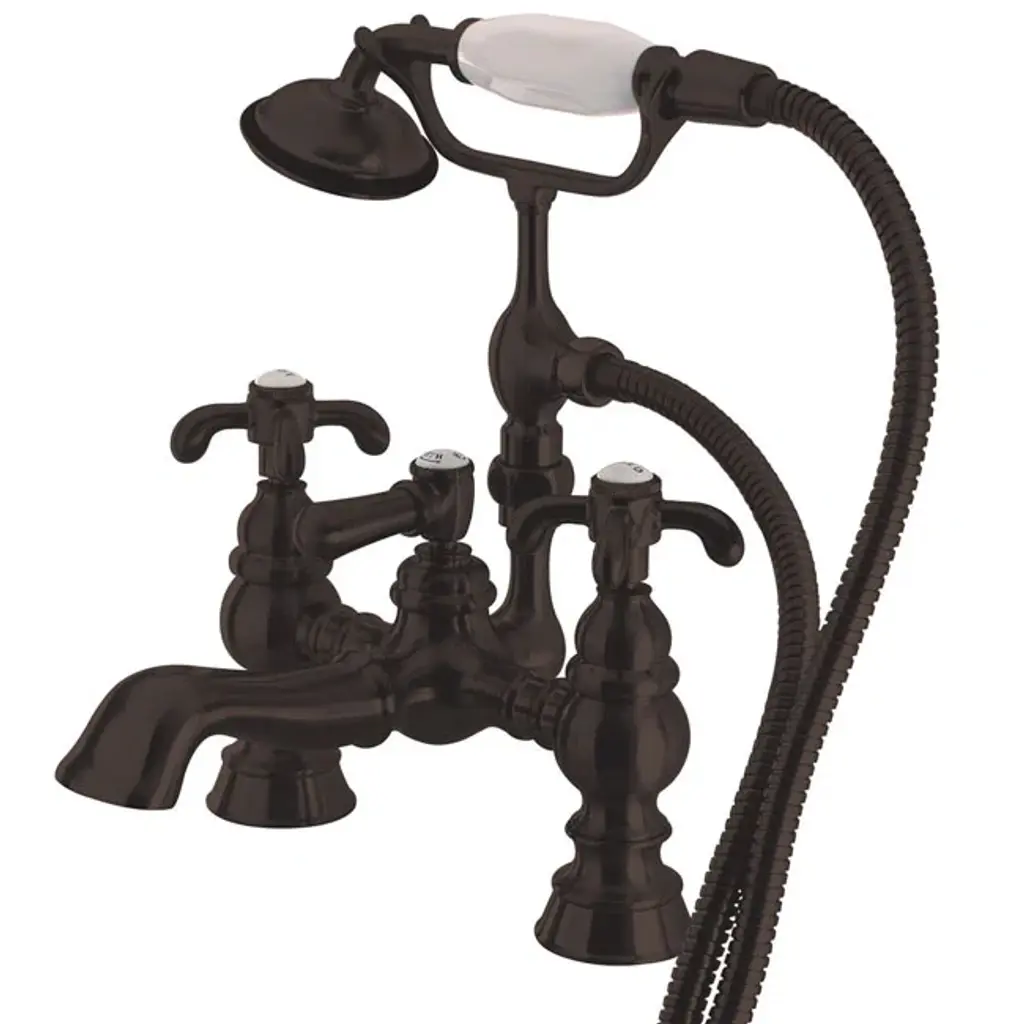Weymouth Double Handle Floor Mounted Clawfoot Tub Faucet Trim With Diverter And Handshower