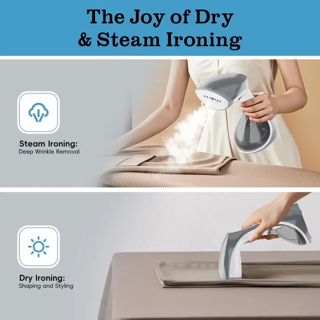 The WHALL Handheld Garment Steamer is a versatile 2-in-1 device that combines the benefits of a powerful steam iron and a flat iron in one compact, easy-to-use design. Equipped with a robust 1200W motor, this steamer heats up in just 25 seconds, delivering fast and efficient wrinkle removal whenever you need it. Whether you prefer vertical hanging ironing or horizontal pressing, this device adapts to your needs without space limitations, making it ideal for home or travel use. Featuring an 8.79 oz removable water tank, you’ll enjoy extended steaming sessions without constant refills. The ergonomic comfort grip handle and 8ft long power cord ensure maximum maneuverability and ease of use. With both steam and dry ironing capabilities, you can tackle everything from deep wrinkle removal to gentle fabric shaping and styling. The steam trigger and steam switch lock allow for precise control, while the included brush frame enhances effectiveness on thicker fabrics. Perfect for a wide range of materials including silk, wool, linen, chiffon, and cotton, the WHALL handheld steamer delivers professional-level results while treating fabrics with care. Whether you're freshening up business suits or prepping delicate evening wear, this garment steamer makes your daily wardrobe maintenance quick, simple, and satisfying.