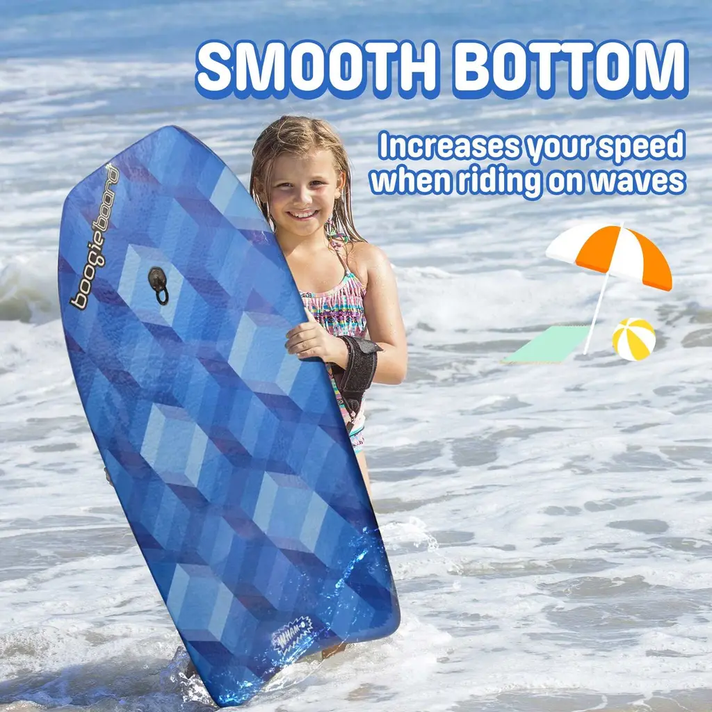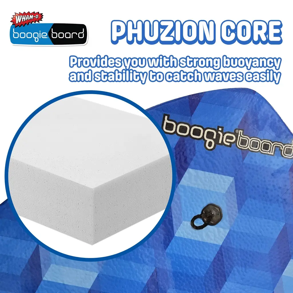 SUPERIOR CONSTRUCTION – Crafted with an advanced Phuzion core (high-density EPS core), this Wham-O body board ensures unmatched durability, impact strength, and rigidity, providing the perfect balance, maneuverability, and speed in all wave conditions. UNIQUE FIBER CLAD COVER – The fiber-clad cover of the Wham-O bodyboards enhances durability and resilience, ensuring a long-lasting performance while the sleek design adds to the board's aesthetic appeal. STYLISH DESIGN – With a 33" board size and beautiful patterns, this boogie board offers the best surfing fun, making it ideal for beginners and experienced boarders alike, ensuring hours of excitement at the beach, river, pool, or waterpark. PREMIUM WRIST LEASH – Designed for maximum safety and comfort, the included detachable wrist leash keeps your board attached to you at all times, providing great control and preventing it from getting lost in the ocean. LIGHTWEIGHT AND PORTABLE – These reliable body boards are lightweight and easy to carry, perfect for family trips to the beach, pool, or any outdoor adventure, ensuring endless fun on the waves.