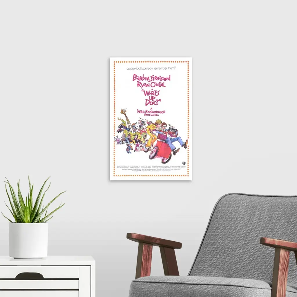 A shy musicologist from Iowa (Ryan) travels to San Francisco with his fiance (Kahn) for a convention. He meets the eccentric Streisand at his hotel and becomes involved in a chase to recover four identical flight bags containing top secret documents, a wealthy woman's jewels, the professor's musical rocks, and Streisand's clothing. Bogdanovich's homage to the screwball comedies of the '30s. Kahn's feature film debut.