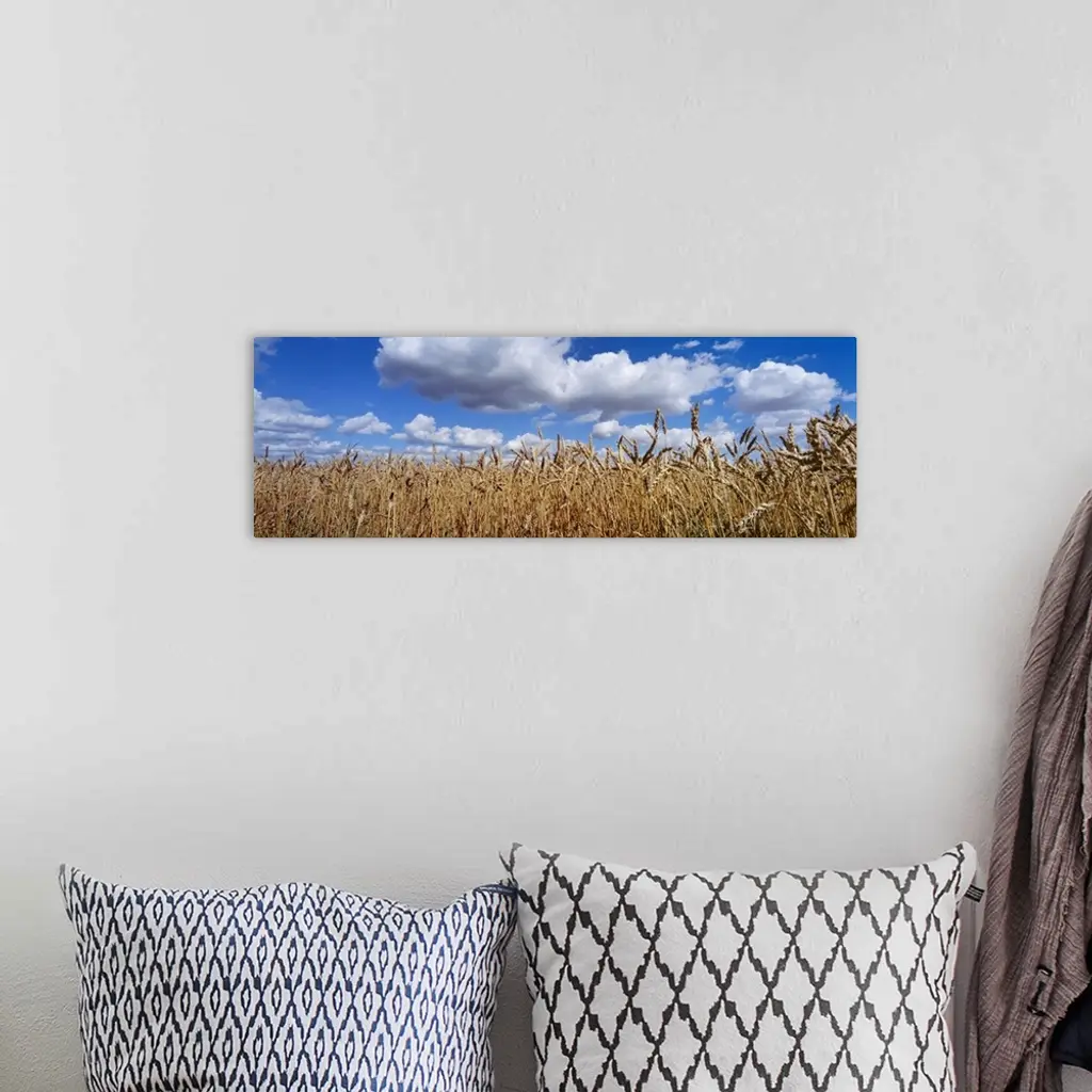 Wheat crop growing in a field, near Edmonton, Alberta, Canada wall art for home and office decor. Discover canvas art prints, photos, mural, big canvas art and framed wall art in GreatBigCanvas.com's varied collections.