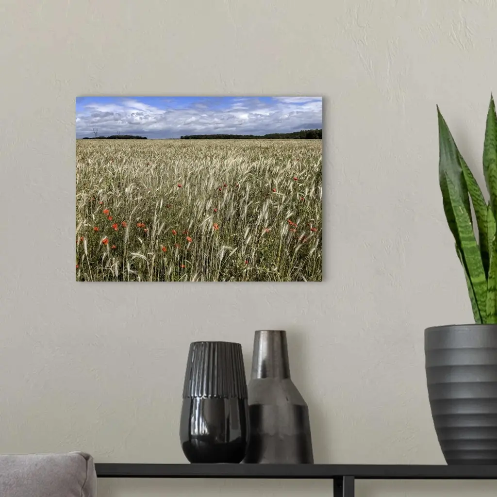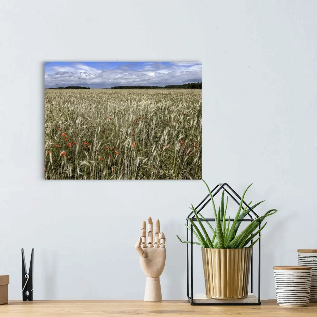 Wheat field with poppies in Eure, Normandy, France, Europe
