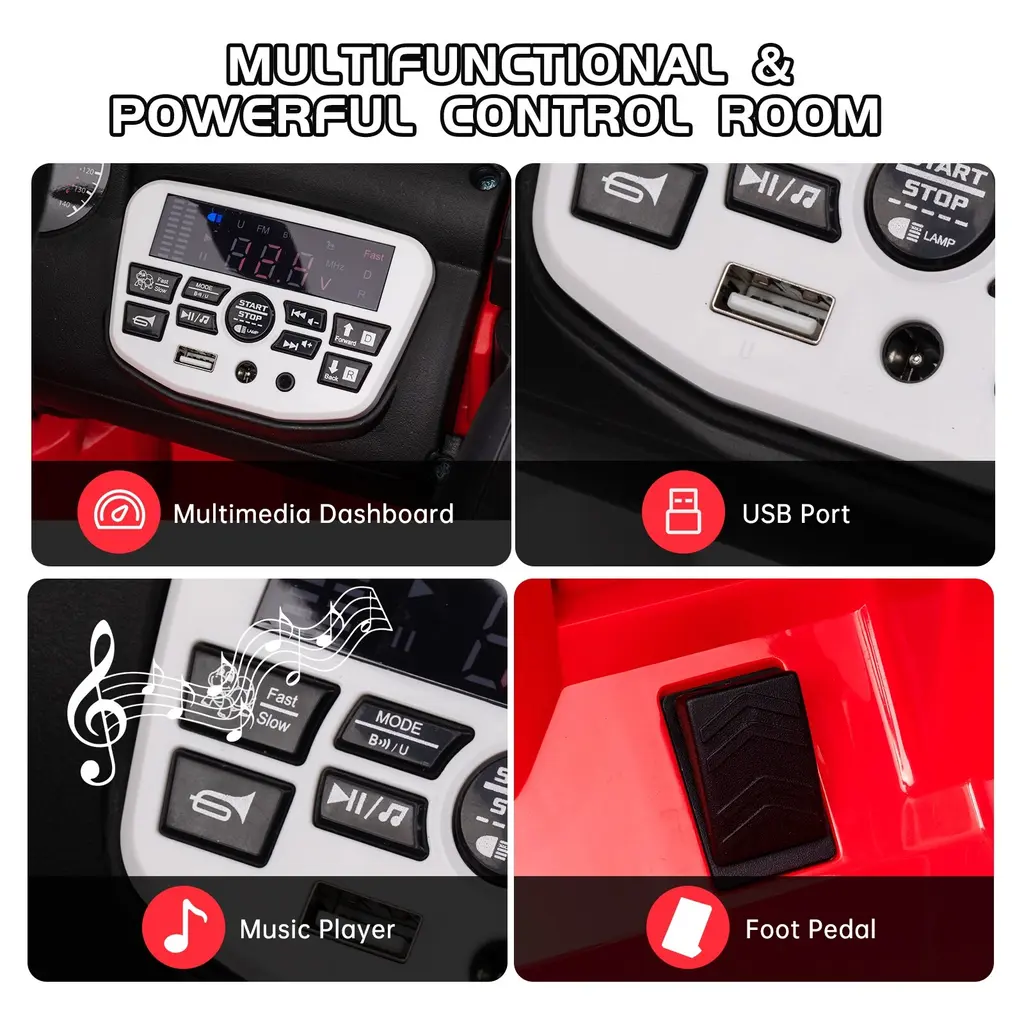 Immerse your child in realistic driving action with our electric car, featuring adjustable seat belts, LED lights, lockable doors, and a mesh windshield for a grown-up driving experience.