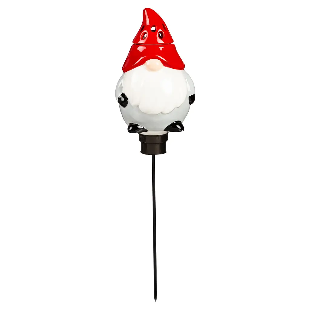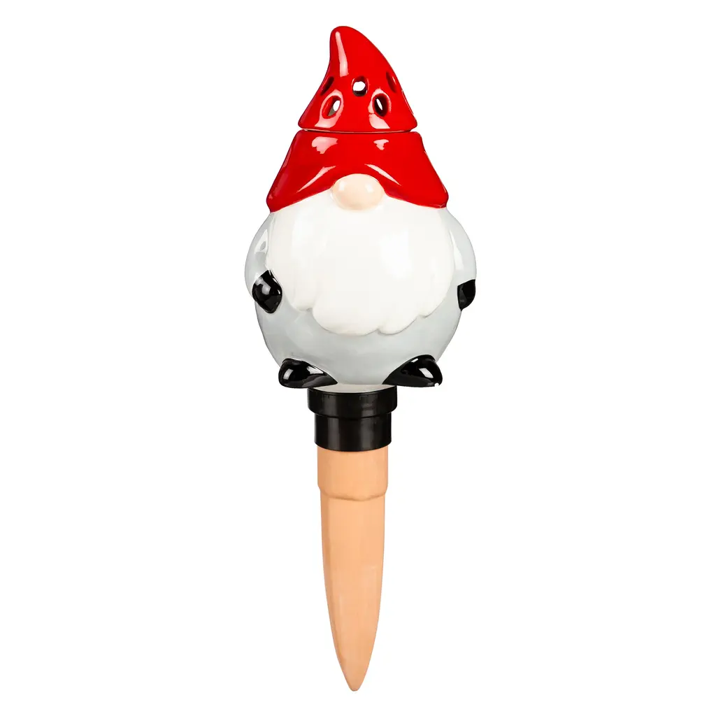 This all-in-one piece has two practical uses in whimsical designs! Coming in a sunflower, frog, gnome or mushroom style, it can be used as a watering globe and a fruit fly/gnat trap. Crafted of ceramic with painted details, the decorative top can be filled with half a cup liquid bait (not included) to attract gnats and flies or filled with water when used as a watering globe. Simply swap out the metal stake with the terracotta spike. The durable materials and weather-resistant finish ensures this vessel is safe for indoor or outdoor use to keep flies at bay and plants watered! Perfect for plants of all kinds, this functional design holds up to 10 oz of liquid.