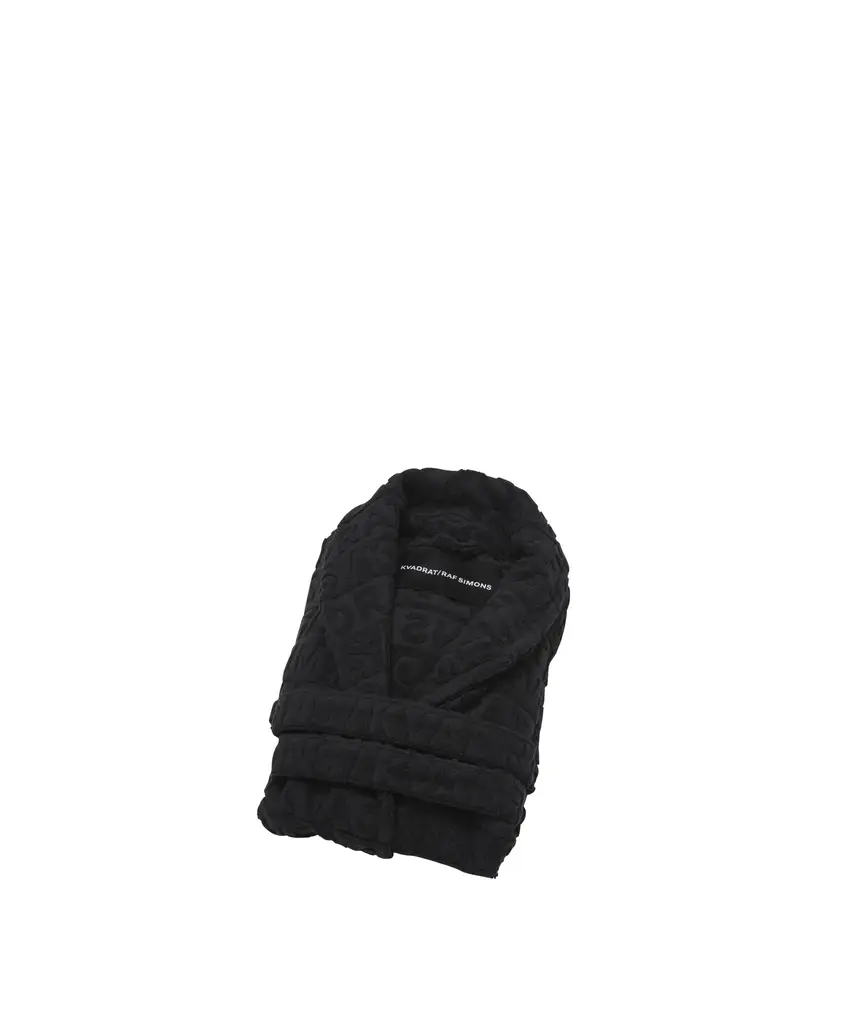 A shawl-collared bathrobe in terry cotton with whipstitch detailing on edges, chest pocket and belt. Designed for wrapping the whole body, it is oversized and generously long. Produced in Italy by Kvadrat/Raf Simons.